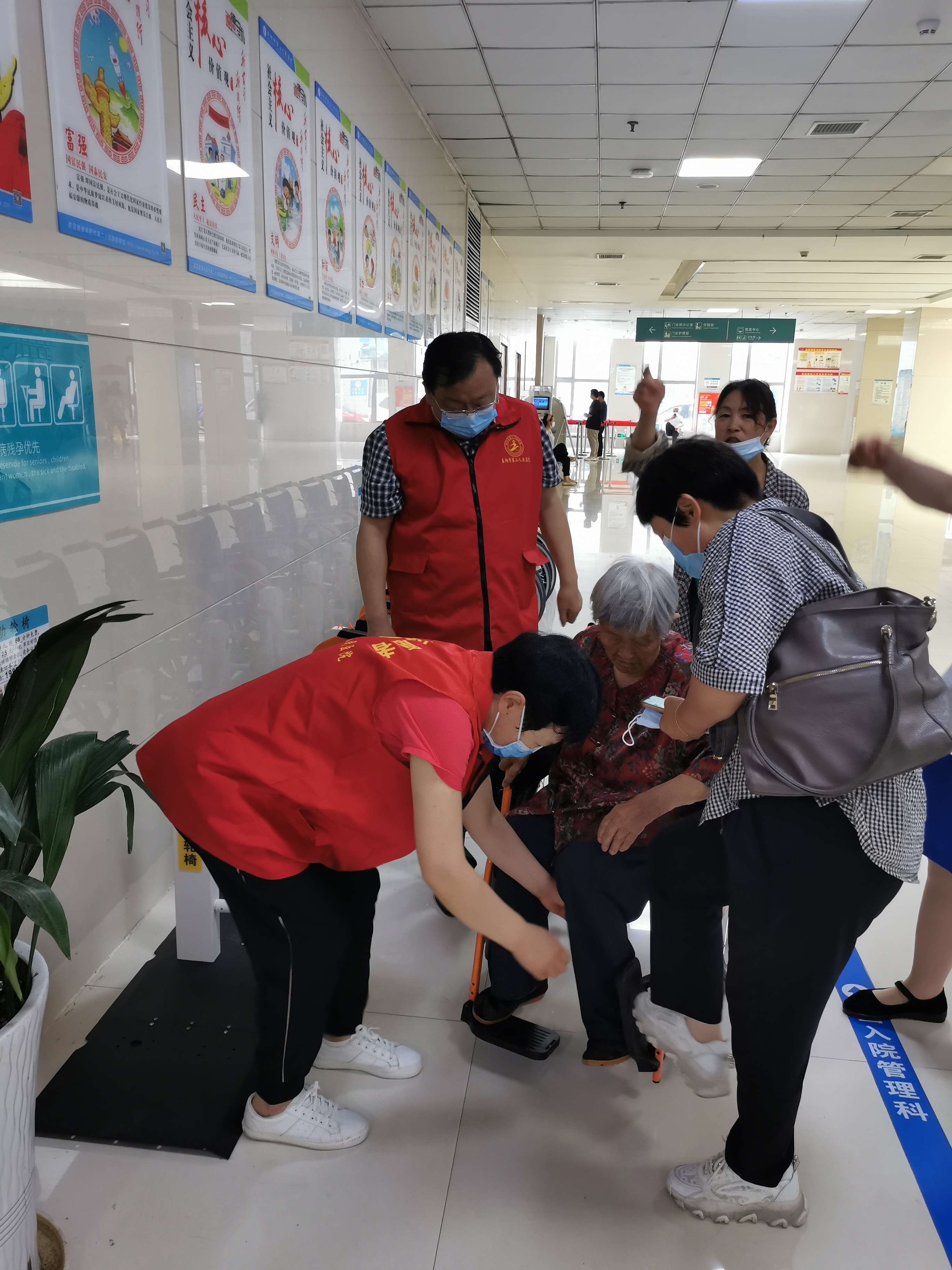 党员志愿者总是在群众需要时出现,践行初心使命,“一个党员一面旗”,党员志愿者的红马甲就是流动的党旗,让党员形象伫立在志愿岗位上,飘在就诊患者的心坎上。他们虽忙碌着,但更快乐着。