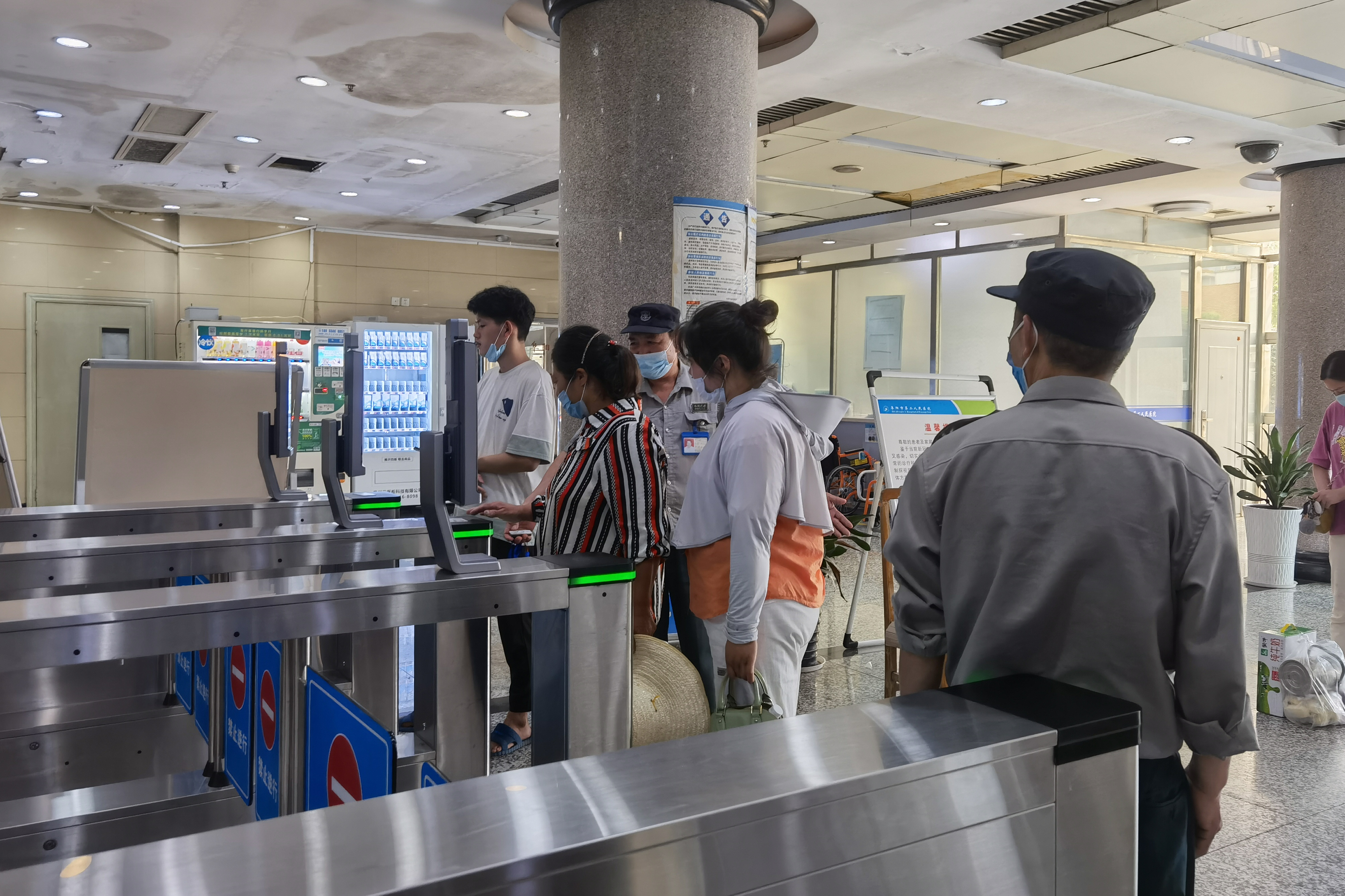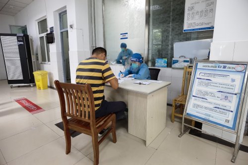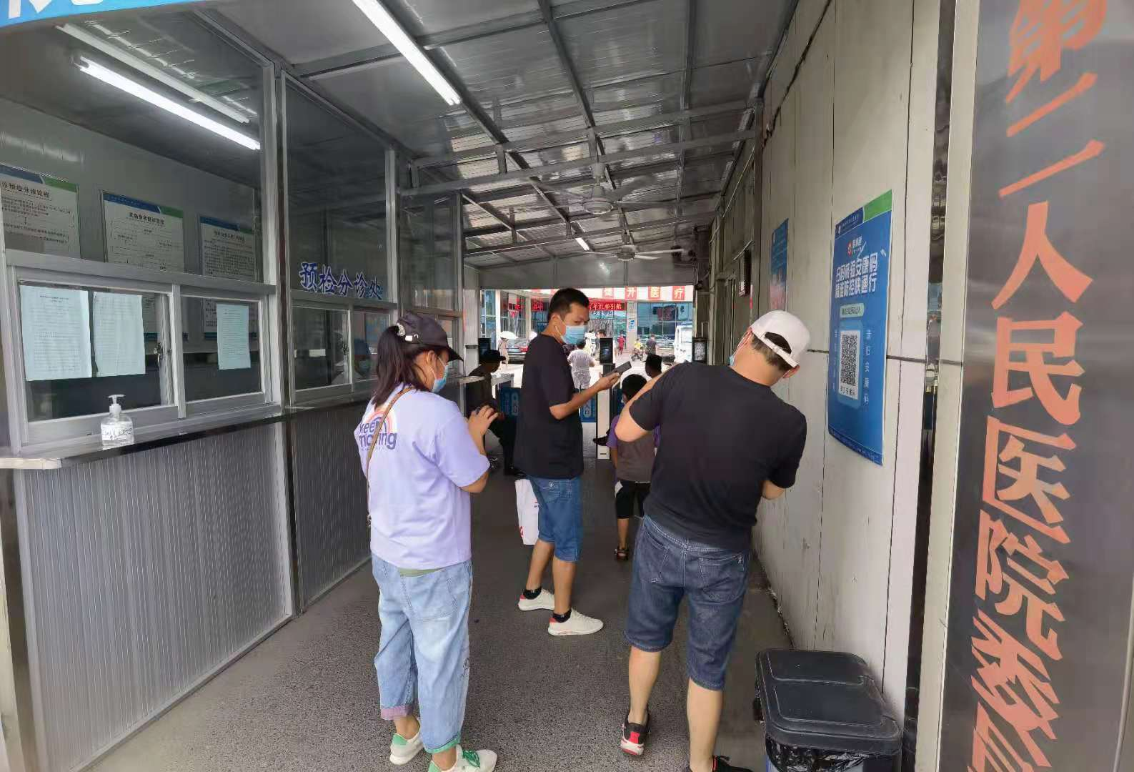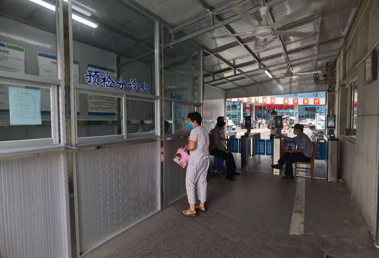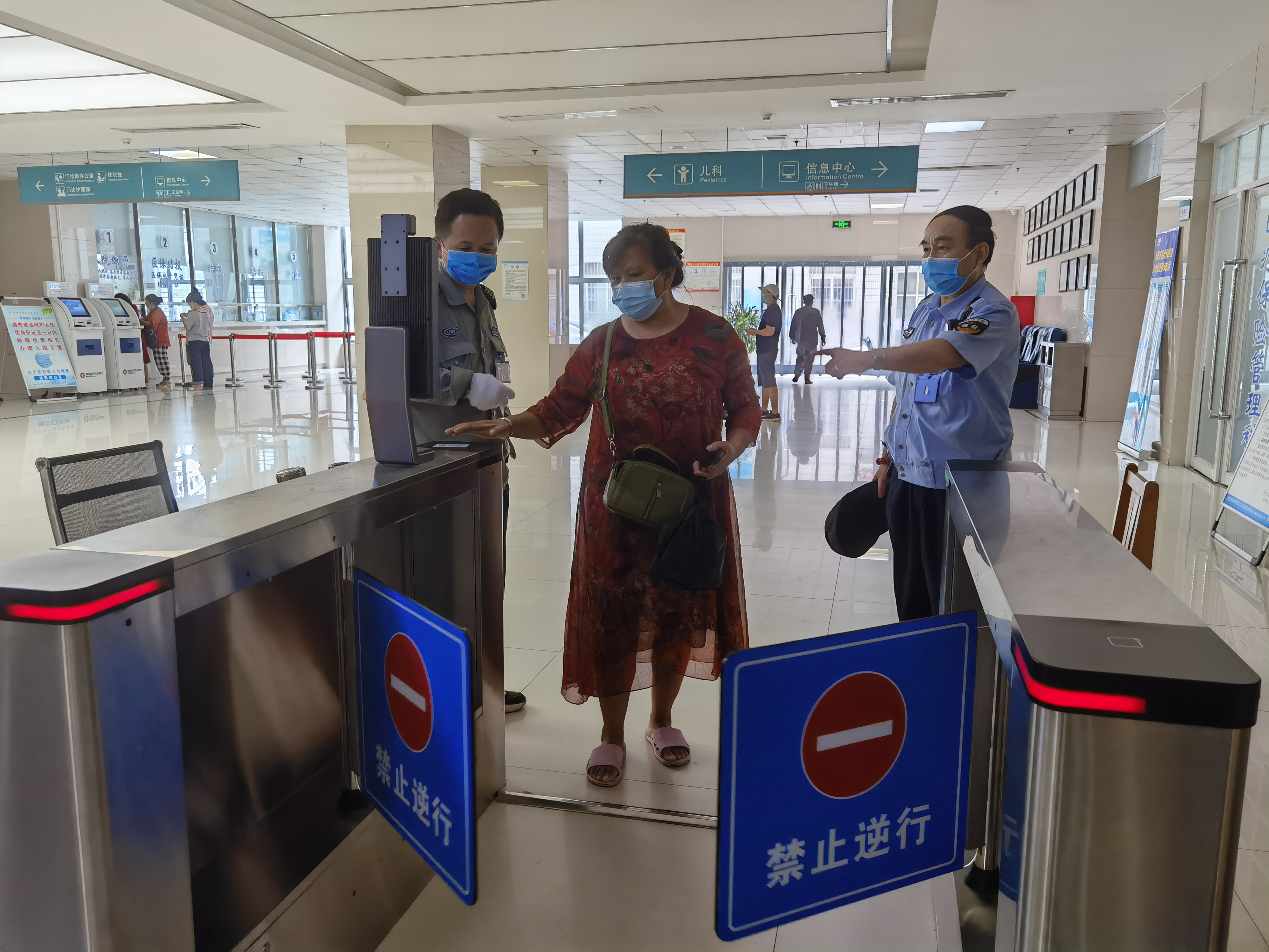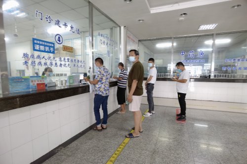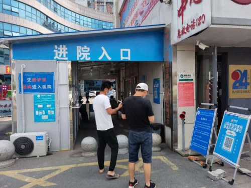 当下正值暑假,市二院迎来就诊小高峰,医院把好入院、急诊、门诊、病房四个关口。在医院南、北两个大门入口,设置预检分诊台,对所有来医院的患者、家属、陪护及相关人员,核对凭身份证及安康码,询问流行病学史,测量体温,检查口罩佩戴是否正确,然后方准予进入院区。