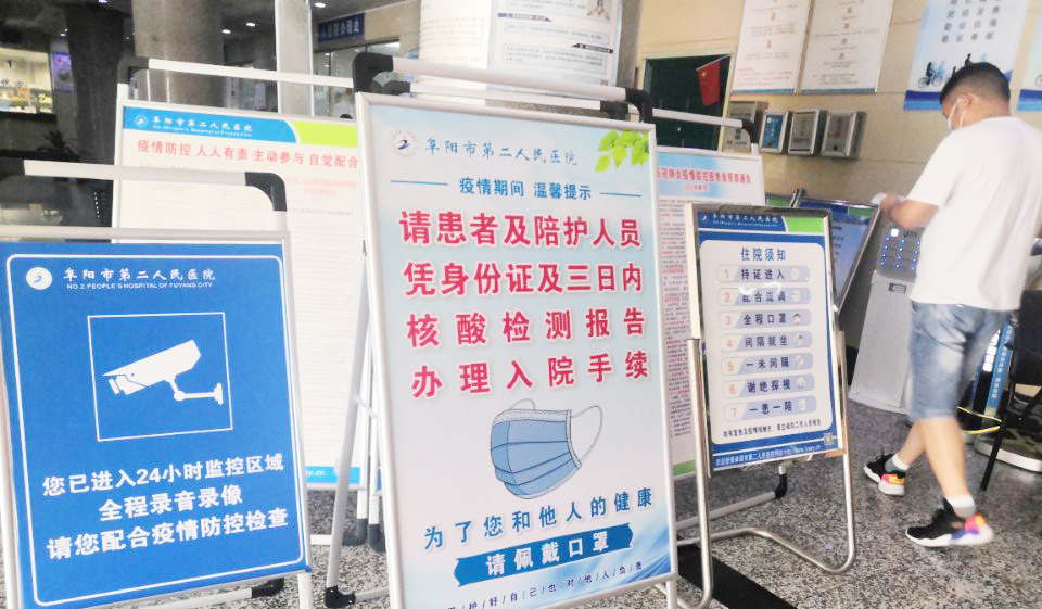 “请您主动出示安康码”“请佩戴好口罩”……昨日上午,在阜阳市二院北门入口,多位医护、保安人员不停地提醒入院人员。