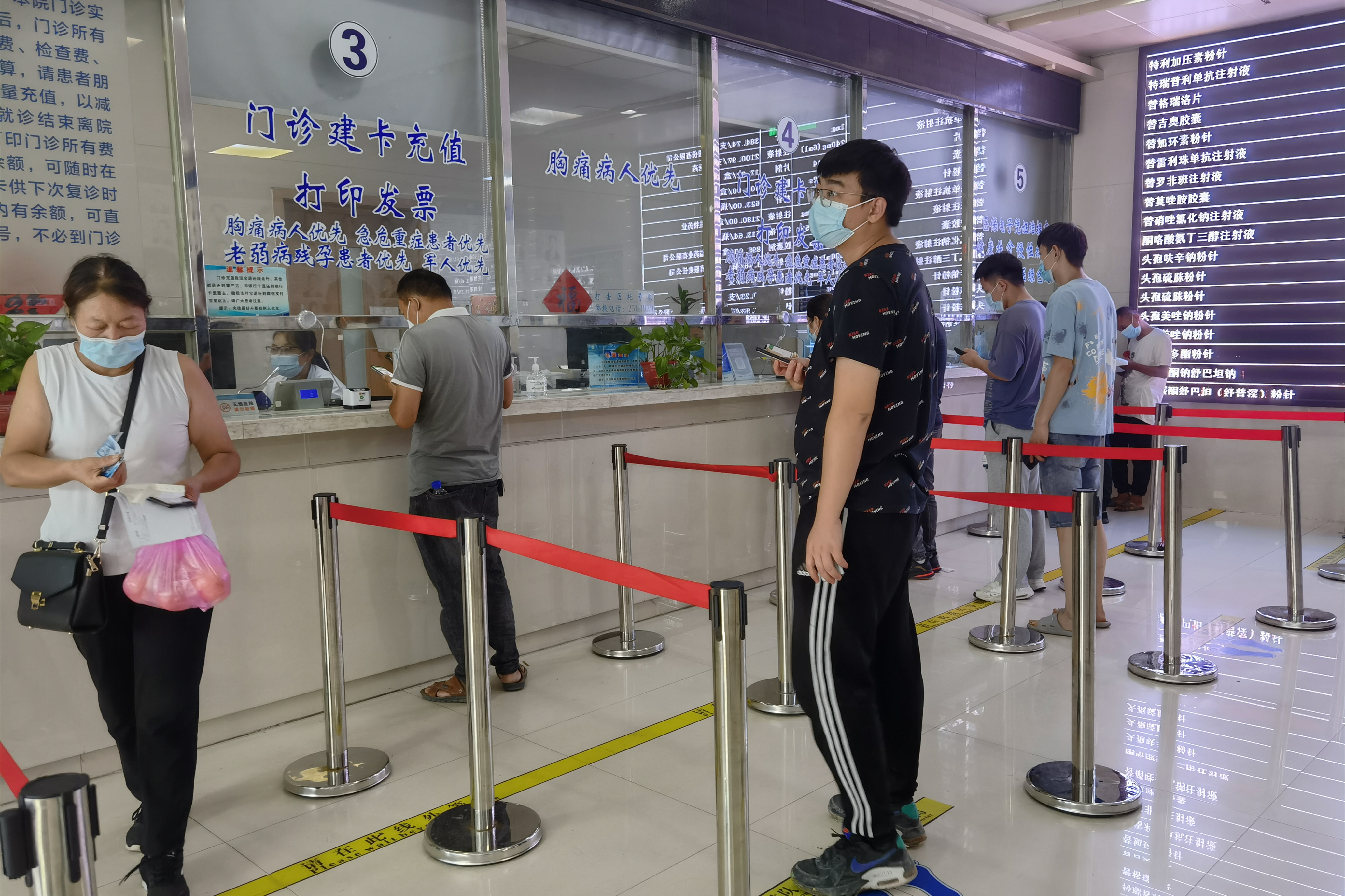 除常规防控措施外,医院还要求病人到门诊就诊时尽量独立就诊,如行动不便确实需要陪伴,仅限一位陪同人员;医院内非必要情况不得摘下口罩。