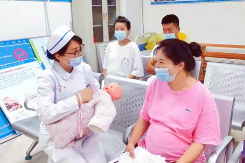 8月6日一大早,门诊部宣教室孕妇学校就迎来了好几位年轻的准爸爸妈妈。产科护士长赵丽、助产士刘晓娟等向他们发放了宣传资料,并详细介绍母乳喂养的相关知识,让孕妈妈提前了解母乳喂养的好处;产科主任赵有仙耐心细致地为前来听课的孕妈妈们做了胎心监护,解答了她们的疑惑;赵丽、刘晓娟还用塑料娃娃模拟婴儿,手把手地教孕妈妈们正确的喂奶姿势、抱奶体位,教产妇如何挤奶,如何保证充足的乳汁,如何正确地给孩子喂养母乳等。