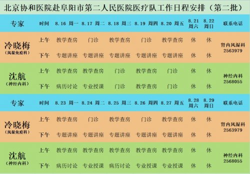 8月16日至8月27日,北京协和医院国家医疗队另2名专家到阜阳市第二人民医院开展巡回医疗工作。