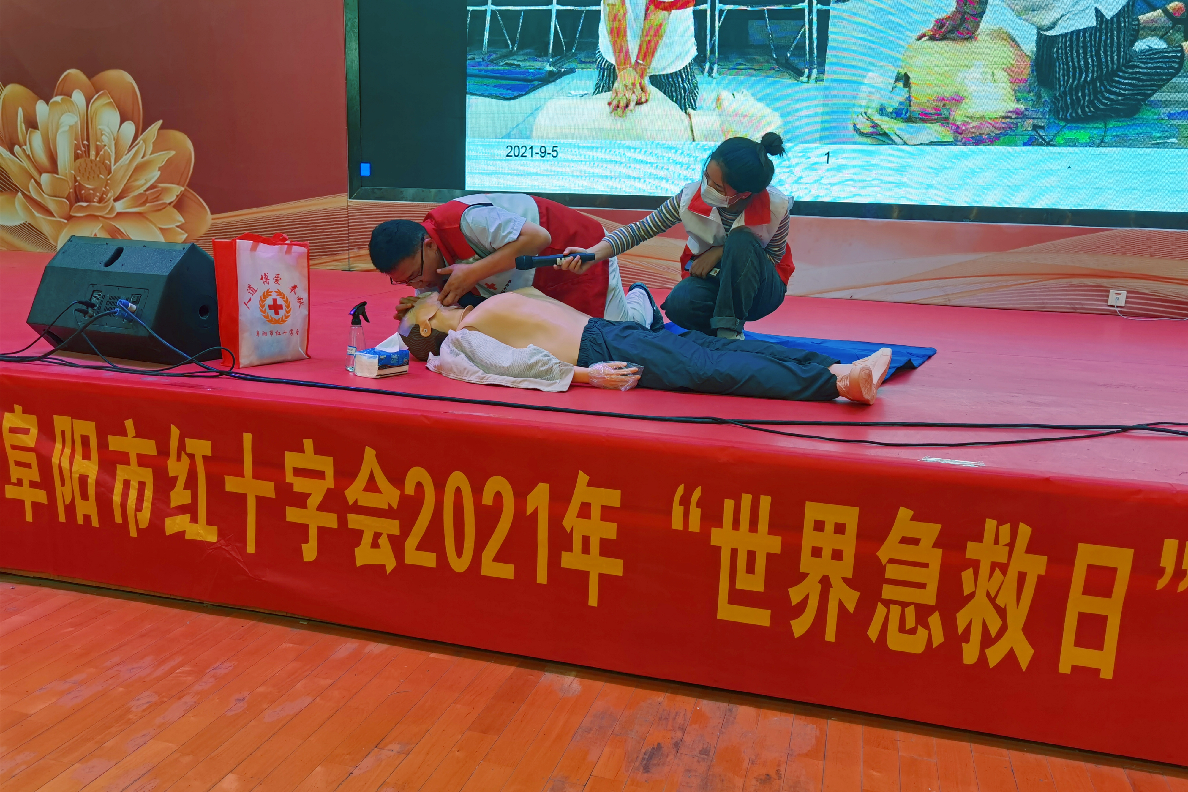每年9月第二个星期六是“世界急救日”,9月5日下午,阜阳市第二人民医院急救分站副主任医师、阜阳市健康素养巡讲专家、国际红十字会认证师资、中国红十字总会注册师资、全科医生吴龙飞,到阜阳一中新校区体育馆开展“阜阳市红十字会2021年‘世界急救日’主题宣传活动”,为900多名入校新生讲授现场救护知识。