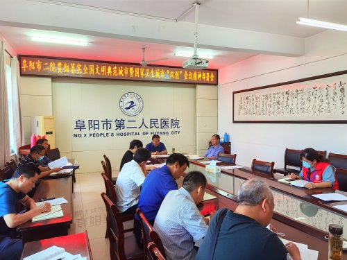 为认真贯彻落实9月6日全市争创全国文明城市暨国家卫生城市推进大会和9月7日市卫生健康委相关专题会议精神,9月8日上午,阜阳市第二人民医院及时召开了由院领导班子成员和各职能科室负责人参加的全国文明城市暨国家卫生城市建设工作专题会议,传达上级会议精神,并按《阜阳市窗口单位创建工作操作手册》要求,对“医院部分”的35项内容进行任务分解。同时,明确国家卫生城市创建中医疗卫生单位的卫生标准。