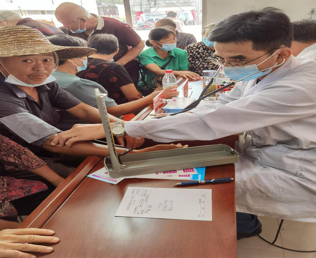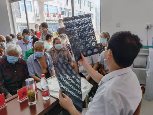 在义诊中,针对农村群众的常见病和多发病,医疗专家为前来的村民进行了内科、心血管内科、骨科、普外科、康复科等项目检查。活动现场,前来求医问诊的乡亲们络绎不绝,专家们认真为他们量血压、测血糖,耐心仔细地为村民诊断病情,讲解病因、病理和用药常识,开具处方,对症发药,并热心地为患者讲解相关疾病的预防保健知识。对能现场治疗的,给予现场施治;对需要进一步检查及治疗的,专家们为他们提出下一步就医指导。活动现场忙而有序,充满温情和关爱。