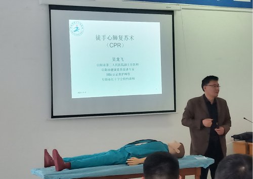 11月5日、6日上午,在成功救治阜阳市公交三公司一名心跳呼吸骤停的职工后,受该公司邀请,阜阳市第二人民医院院前急救专家、健康素养巡讲专家、副主任医师吴龙飞到该公司进行徒手心肺复苏术(CPR)知识宣讲。