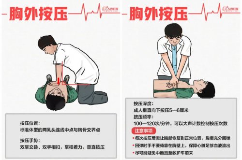 临床实践证明,在心跳停止刚发生的前几分钟,单纯的心前区叩击也可以使停搏的心脏复跳,方法是操作者用拳头在病人两乳头连线中间用力连续叩击3-5次。有相当一部分心跳刚停止的病人,做胸外心脏按压时,按压十数次就可以心肺复苏成功。即使第一反应人没有对口人工呼吸,单纯胸外心脏按压也有效!也比什么都不做好。