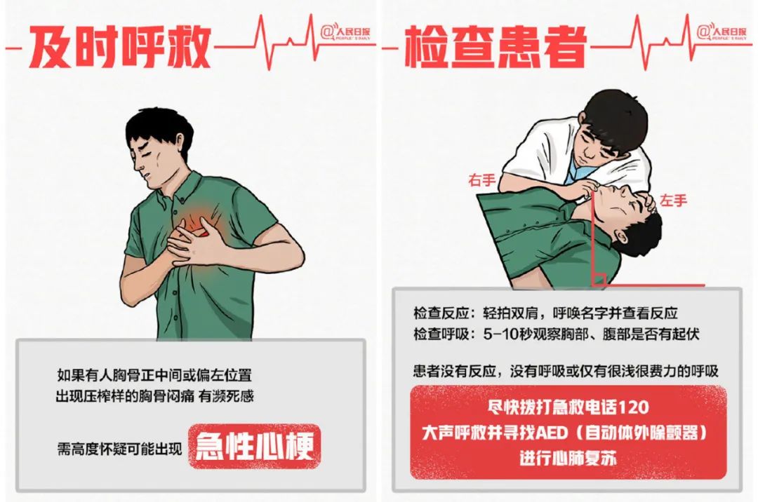 2021年10月23日20:25,阜阳市某公司,运动后的45岁职工杨某某(化名)感觉胸闷,回办公室休息,突然抽搐,呼吸困难,2分钟后呼吸停止,同事呼救120求救。患者有冠心病,曾经行介入冠脉内支架治疗。6分钟后阜阳市第二人民医院急救分站吴龙飞副主任医师和护士赶到现场,紧急救治后送阜阳市第二人民医院急诊科心肺复苏室。