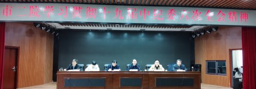 1月21日下午,阜阳市二院召开会议学习贯彻习近平总书记在中国共产党第十九届中央纪律检查委员会第六次全体会议上的重要讲话精神和全会公报。院党委领导班子成员、各党支部委员、各科室负责人参加会议,院纪委书记管海新主持会议。