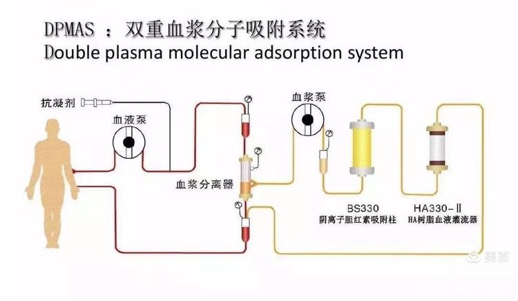 据介绍,“人工肝”技术又叫做“人工肝支持系统”,包括血液灌流、血浆置换、连续性血液净化技术和分子吸附再循环系统,是有效的肝功能替代疗法。人工肝治疗是目前各种原因导致的重型肝炎、肝衰竭的有效治疗手段,合理使用可以明显提高患者的生存率。而双重血浆分子吸附系统(DPMAS)是在血浆胆红素吸附治疗的基础上,增加了一个可以吸附中大分子毒素的广谱吸附剂,因此DPMAS不仅能够吸附胆红素,还能够清除炎症介质,不耗费血浆,同时又弥补了特异性吸附胆红素的不足,从而使肝细胞休养生息,获得再生。