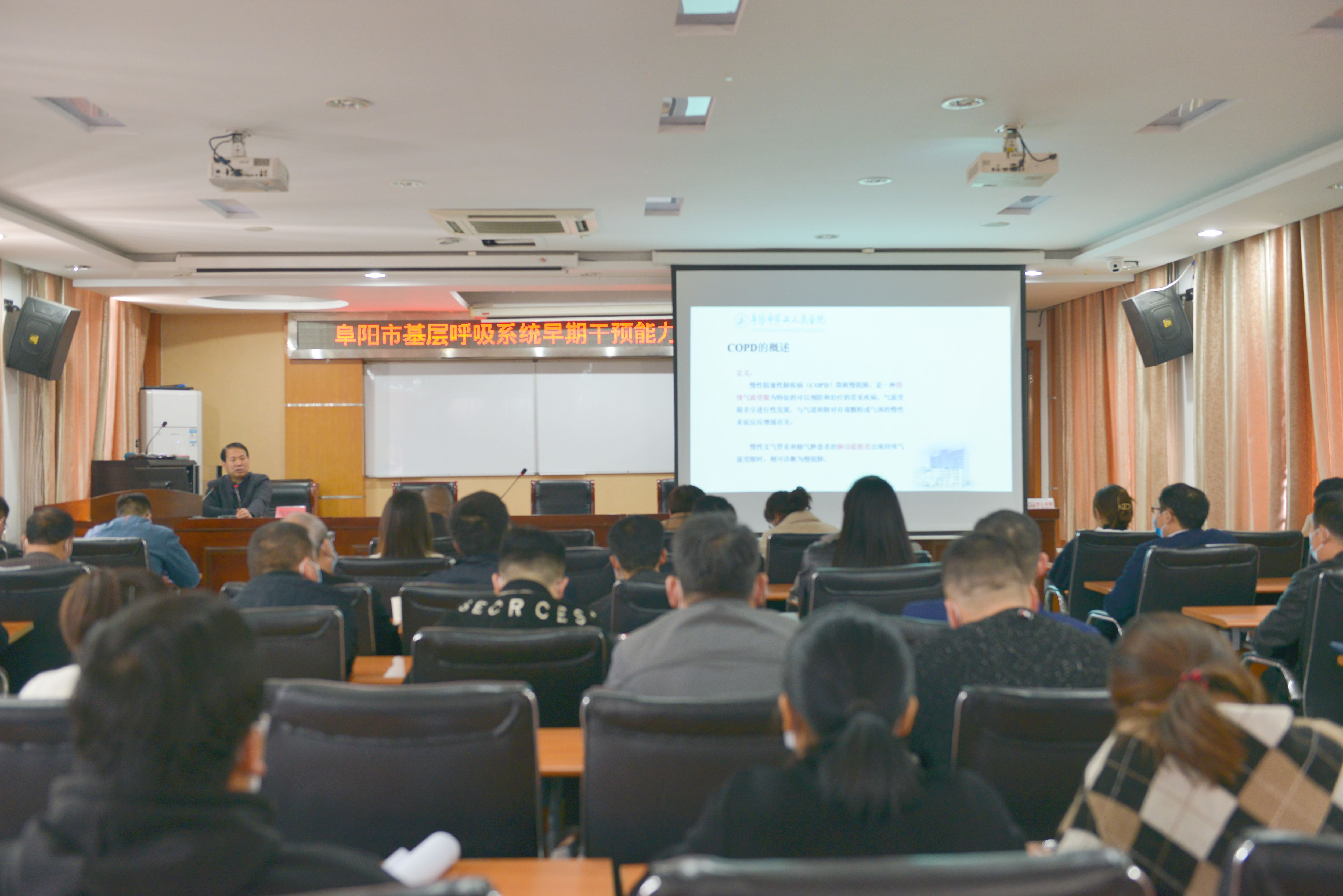 培训由阜阳市第二人民医院呼吸与危重症医学科综合病区主任、主任医师腾小宝主持。首先,阜阳市第二人民医院党委副书记、院长韩明锋深入浅出地讲解了支气管哮喘、慢性阻塞性肺疾病(COPD)的机制、临床表现及预防管理等。紧接着,阜阳市第二人民医院肺功能室程方旭医生讲述了简易肺功能仪标准化操作、注意事项、肺通气功能检查原理、适应症及操作要点等。在本次培训结束后,市二院工作人员现场给25家基层卫生院发放25台肺功能仪。
