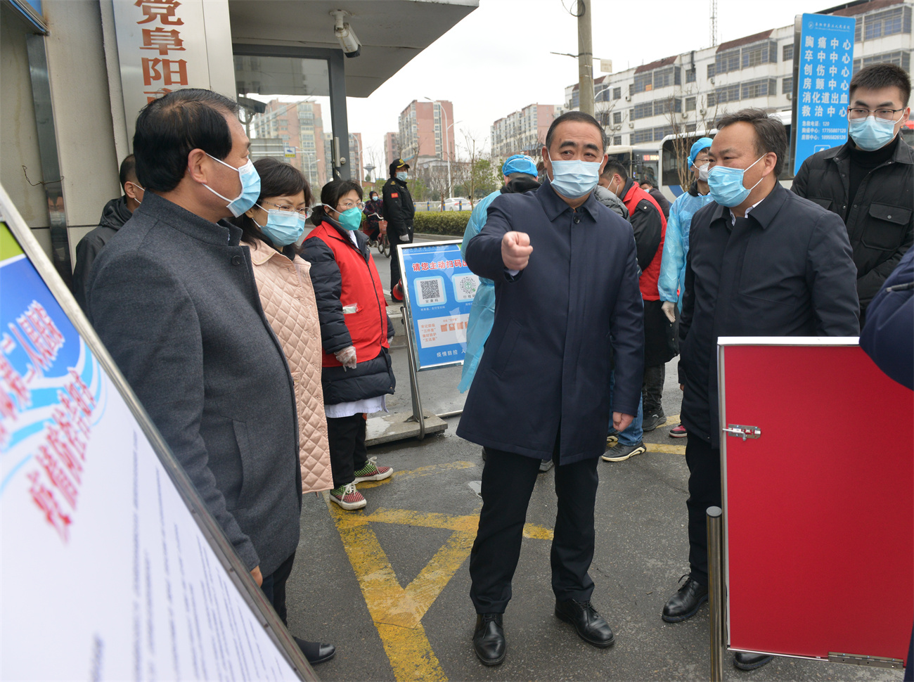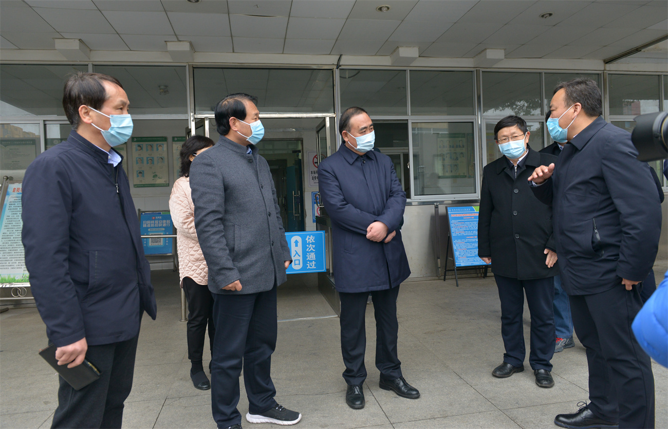 孙正东一行首先来到市第二人民医院北门入口处,实地察看了人员进入管理、预检分诊情况。之后来到发热门诊,了解发热门诊设置和工作情况,询问了重点人员排查、二次预检分诊制度落实、病区管理、医疗设备的配备、防护物资数量储备,以及该院作为我市新冠肺炎定点救治医院和安徽省公共卫生临床中心(阜阳)建设情况。