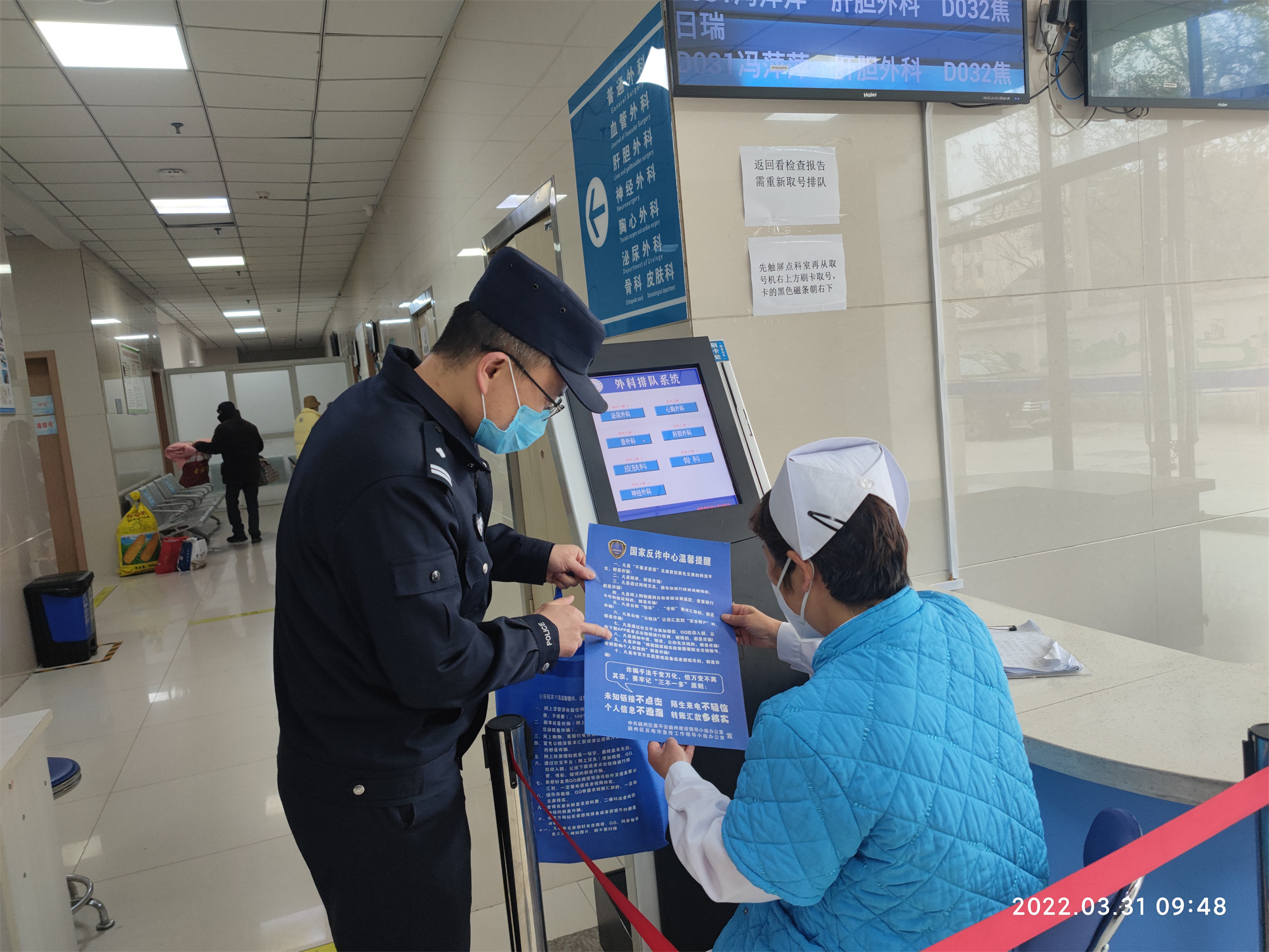 | 颍西派出所到阜阳市二院开展安全检查和防范电信诈骗宣传活动 | ||||