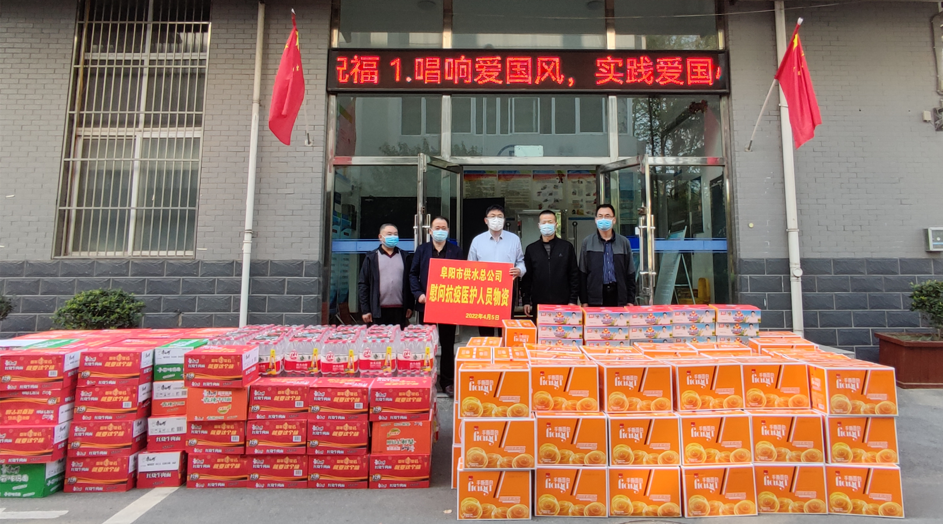 “疫情就是命令,防控就是责任。”社会心连心,为支援市第二人民医院一线医务人员同战疫魔,共克时艰。日前,多家爱心企业和热心人士纷纷向市第二人民医院伸出援助之手,4月4日,同昇房产公司捐赠方便面、火腿肠、矿泉水各60箱;同日,纵越商贸公司捐赠方便面40箱、火腿肠20箱、八宝粥20箱、矿泉水50箱;安徽昊源化工集团有限公司捐赠方便面400箱、火腿肠200箱、营养快线182箱、香飘飘奶茶100箱;4月5日,阜阳商厦捐献方便面120箱、榨菜10箱,价值1万元;阜阳供水总公司捐献方便面、火腿肠各80箱,手撕面包100箱,矿泉水100箱;4月6日,阜林百果园公司捐赠阿克苏苹果100箱、香梨120箱、沃柑266箱,价值4万元。