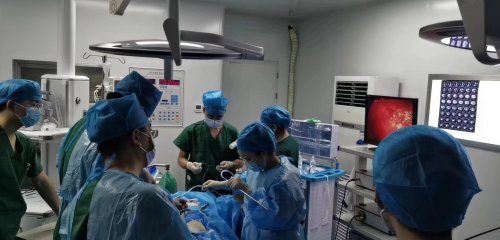 5月31日,一名中年女性患者因长期患有肾脏囊肿疾病,就诊于阜阳市第二人民医院临泉医院,CT及彩超显示囊肿直径比较大,如不及时处理,可能会导致肾脏各种并发症的发生。经过市第二人民医院专家的检查,发现肾脏囊肿的直径已经增大至5.5*6.5cm。腰部可触及肿块,且有溃破风险。鉴于该患者不便外出就诊,泌尿外科主任戴廷山、副主任医师范振永,麻醉科主任董红启就地在阜阳市二医院临泉医院老集镇中心卫生院,成功为其开展了腹腔镜下肾囊肿去顶减压微创手术,手术顺利,疗效明显。