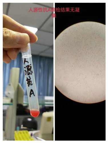 经反复鉴定、多次查阅资料,医生根据血清学反应格局怀疑是B( A) 血型。在全国知名输血专家李凌波的建议下,输血科加做了人源性抗A实验,利用现有条件,用血清学实验证实这是一例B( A)血型。