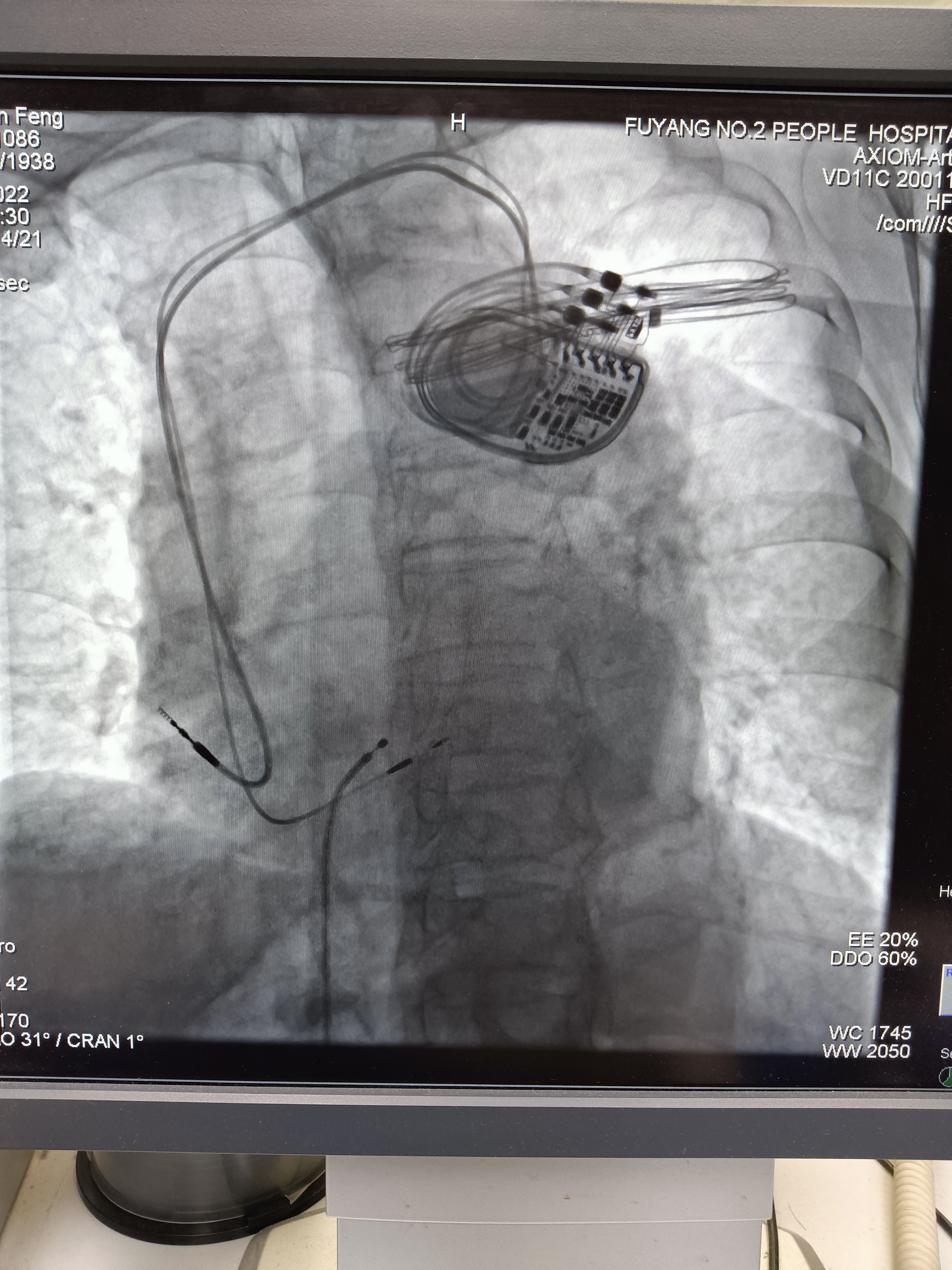 经过充分讨论和评估,心血管内科介入手术团队决定采用国内外最先进的左束支区域起搏技术为患者实施永久性心脏起搏器植入术,以保证患者生理性的心室激动顺序和心室收缩的同步性,从而保护心功能。7月2日,经过详细的术前讨论和严密的技术准备,以心血管内科二病区主任卢家忠,副主任医师戎成振等组成的介入手术团队成功为患者实施左束支区域起搏手术。手术过程顺利,术后患者恢复良好,起搏器工作正常,无不适。