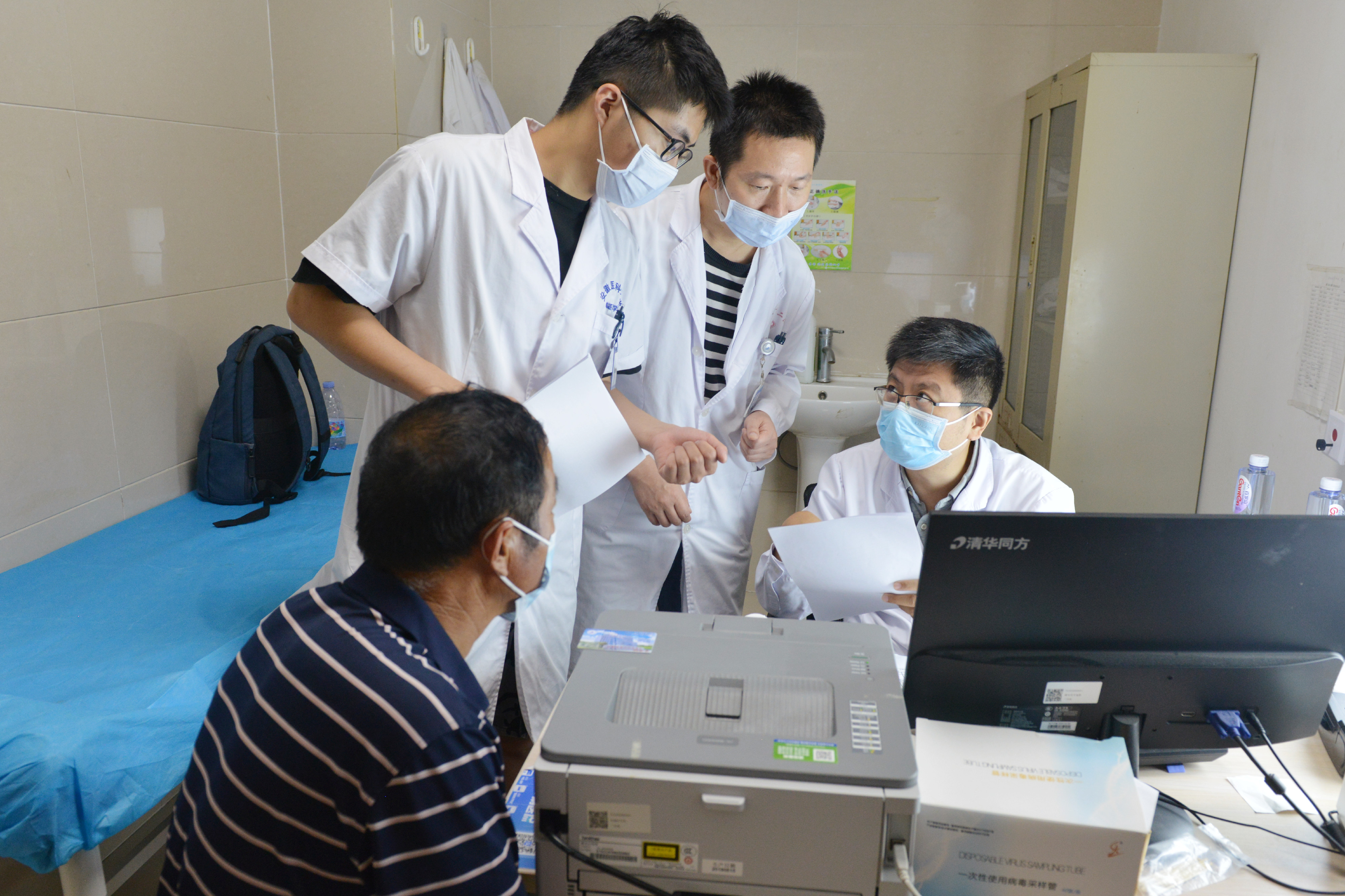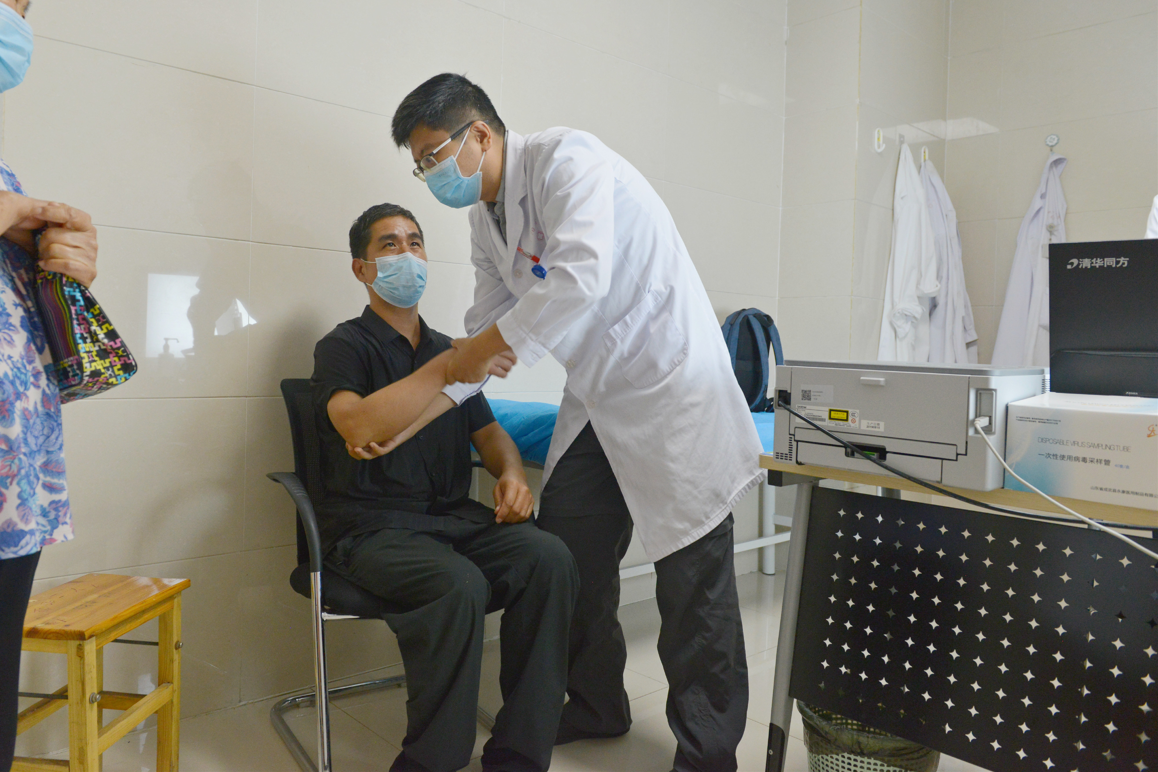 9月7日上午,阜阳市第二人民医院神经外科门诊早已排起了长队,北京协和医院神经外科副主任医师郭毅也已经来到门诊开始今天的工作。不少病人得知郭毅医生在市二院坐诊,早上不到八点就来到神经外科门前等候。其中一位患者刘某某,男,66岁,因“运动性迟缓进行性加重10年余,四肢不自主舞动加重一周”为主诉入院,拟为“帕金森病”,曾就诊上海某医院并于一年前有脑起搏器手术史,郭医生在详细了解其情况后,现场为其进行调整。热心的郭医生通过专门设备(医用程控仪)来调整神经刺激器的刺激参数以符合患者治疗需求。一番调整过后,病人明显感觉良好。