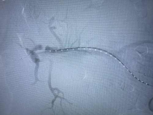 据市第二人民医院血管外科主任、副主任医师、阜阳市医学会外科学分会血管外科学组组长、血管外科学科带头人芮清峰介绍,累及内脏动脉的主动脉瘤或主动脉夹层一直是治疗的难点,传统外科开放手术,创伤大、并发症多、死亡率高。随着微创技术的发展,主动脉腔内修复已成为主动脉疾病的主流治疗方式,微创、并发症少;但是累及内脏动脉的纯腔内治疗(开窗支架或分支支架技术)操作复杂,依照分支血管位置,在支架上开出对应的"窗口",个体化设计支架,在隔绝主动脉瘤或夹层的同时,避免了分支血管缺血。应用开窗型带膜支架,术中使支架上的孔道与分支血管相对,既能避免封堵重要血管,又可获得足够的封堵区域。