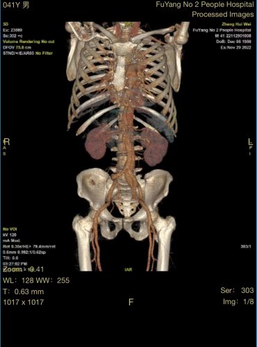 患者张某,男性,41岁,颍州区九龙镇居民,2020年因主动脉夹层在市第二人民医院血管外科行胸主动脉覆膜支架腔内隔绝术,术后恢复尚可,1月前在进行重体力劳动后,出现腰背部疼痛不适,复查主动脉CTA,考虑腹主动脉夹层动脉瘤。