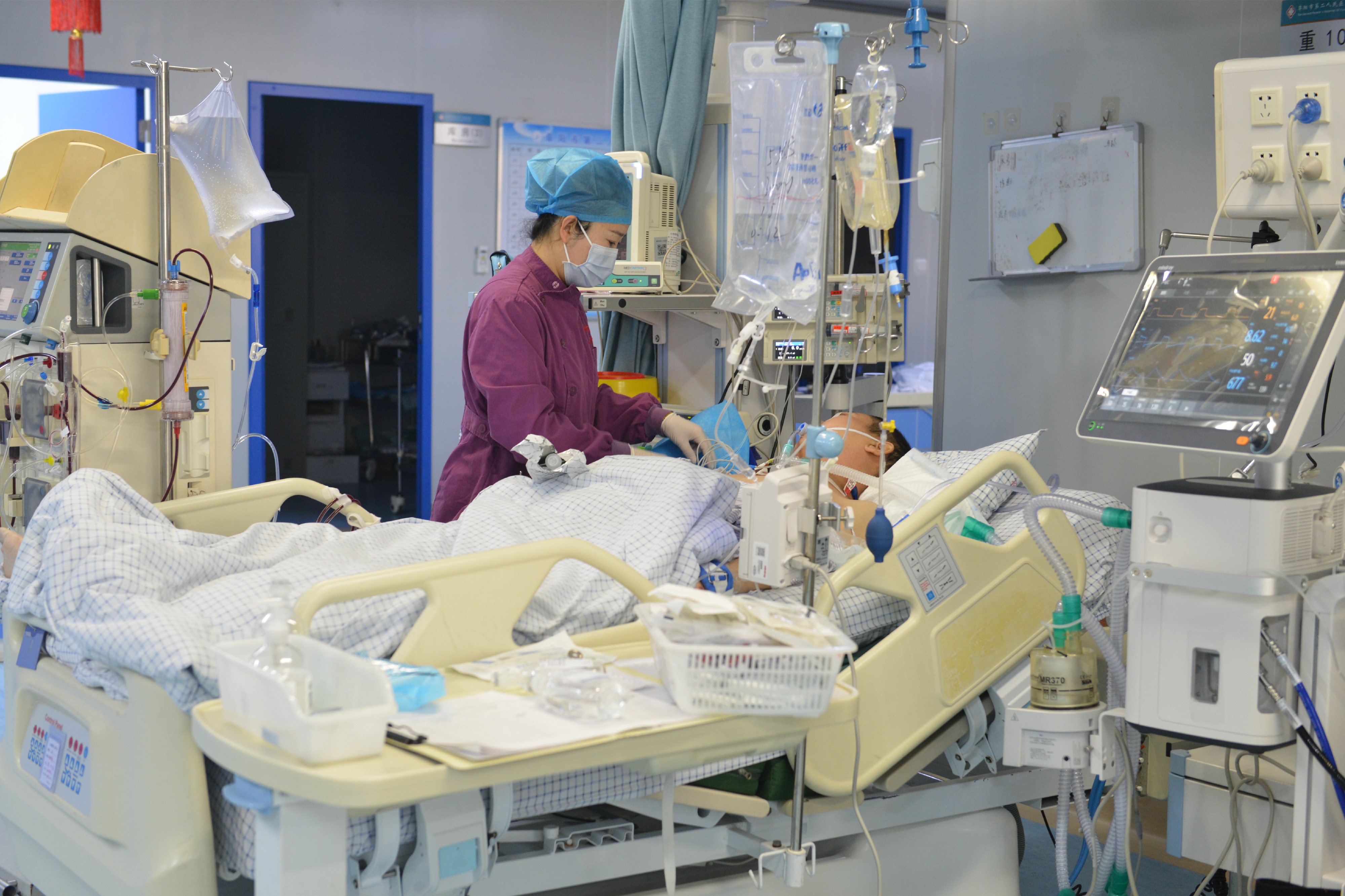 为落实“保健康、防重症”目标,连日来,全院广大医务人员舍小家为大家,夜以继日奋战在救治一线。急诊科、呼吸与重症医学科门诊、呼吸与重症医学科综合病区、呼吸与重症医学科感染病区,呼吸与重症医学科危重症病区、以及重症医学科(ICU)内科病区、外科病区、感染病区,连同两个心内科ICU、神经外科ICU均满负荷运行,呼吸机供不应求,医院则极力提供高流量吸氧,并对心肺循环衰竭的危重症患者第一时间上了人工心肺机(体外膜肺氧合ECMO),目前全院三台人工心肺机已全部投入使用,且已成功抢救危重症患者。
