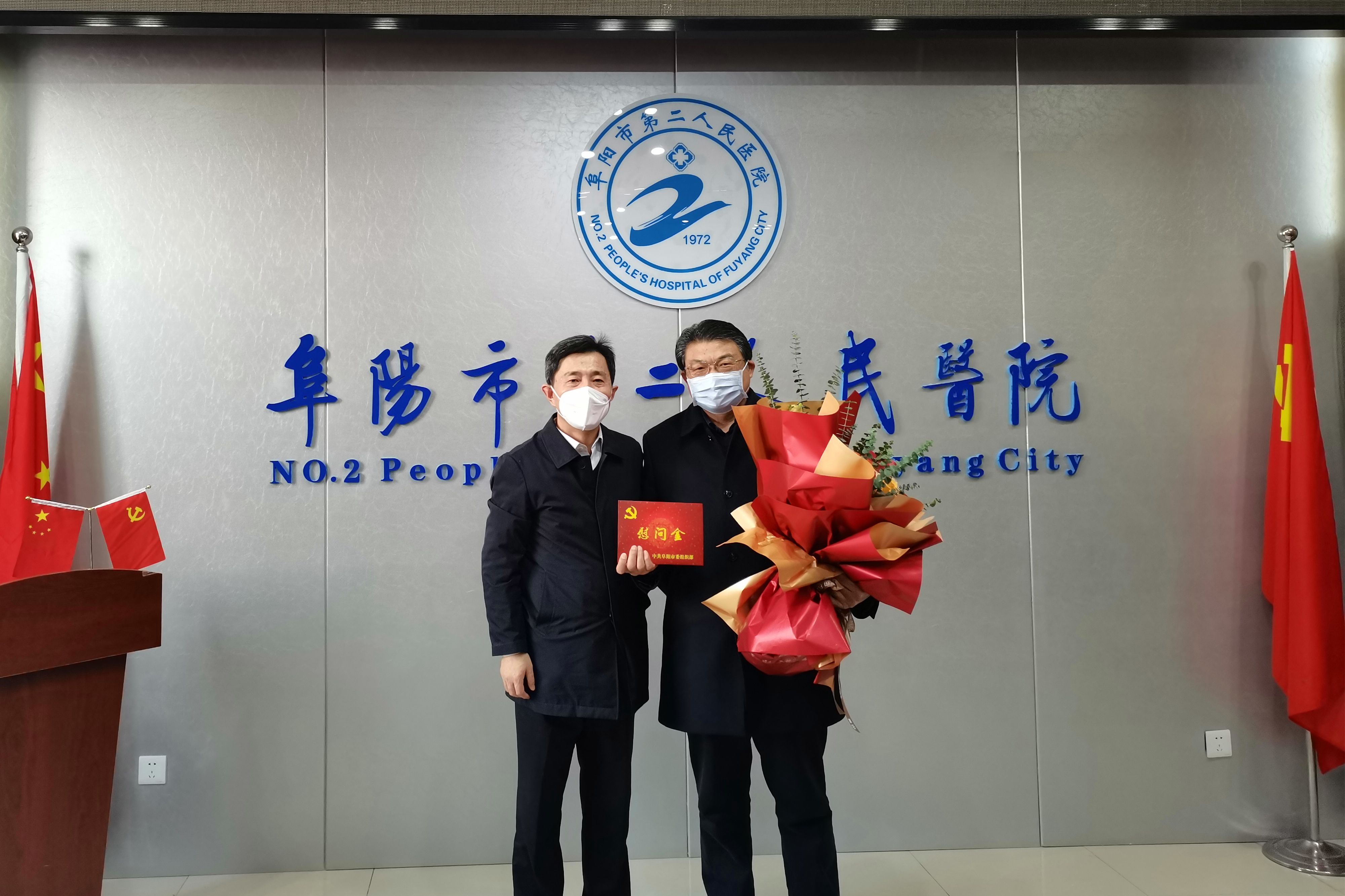 新春佳节即将来临之际,1月5日上午,阜阳市政府党组成员、副市长,市公安局党委书记、局长张晓东,到市第二人民医院走访慰问专家人才,向该院党委委员、肾病科主任、江淮名医李龙海教授送上鲜花和慰问金,并致以节日的问候和新春的祝福。院党委书记丰效寺,党委副书记、院长韩明锋,党委委员、副院长刘虎、麻宏亮、高勇,党委委员祖大玲参加慰问。