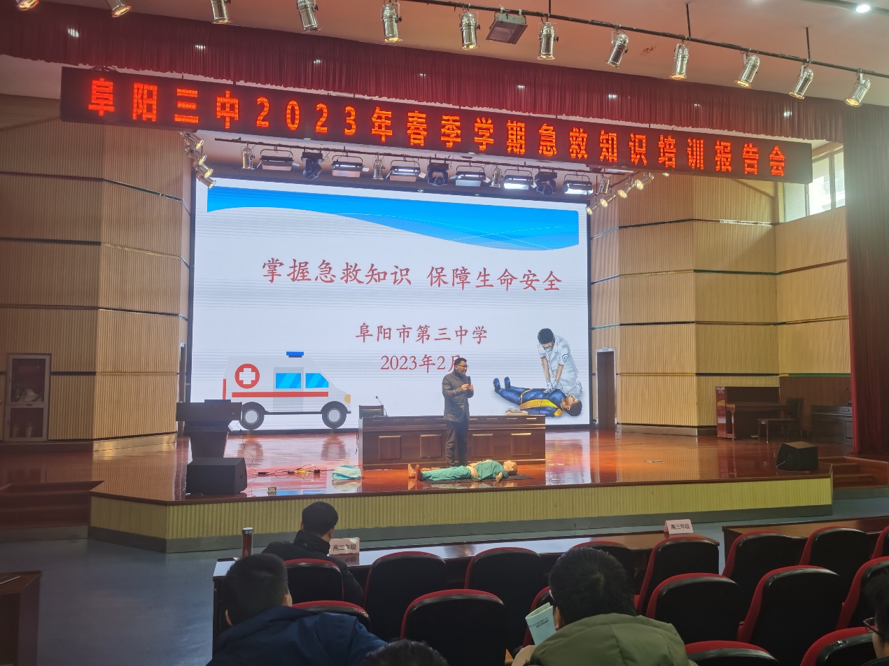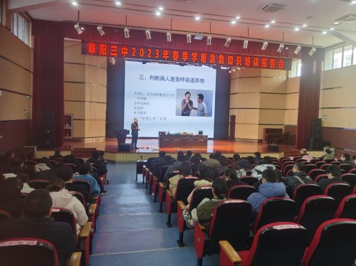 2月20日上午,阜阳市第二人民医院副主任医师、市健康素养巡讲专家、市第六届政协委员吴龙飞应邀到市第三中学新校区开展2023年春季学期急救知识培训报告会,为近200名教师员工讲授现场救护知识。