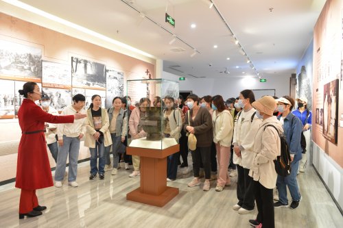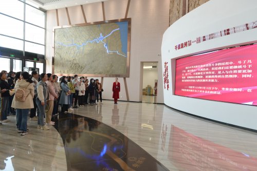 第二站,大家来到王家坝抗洪纪念馆—阜阳首个“全国爱国主义教育示范基地”。进入馆内,讲解员带领大家参观了千里淮河·沧桑蒙洼、顾全大局·舍家卫国、自强不息·百折不挠、同舟共济·风雨战歌等7个展厅,通过呈现一幅幅珍贵的照片、一段段影像、一座座雕塑等史实资料,全面展示了淮河治理、抗洪救险、领导关怀等伟大历程,生动诠释了王家坝精神的丰富内涵及蒙洼人民舍小家、为大家的奉献精神。