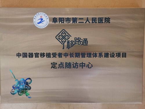 2022年2月26日,阜阳市第二人民医院器官移植受者中长期管理体系建设项目定点随访中心揭牌,旨在为我市器官移植患者进行长期随访,提供健康指导。