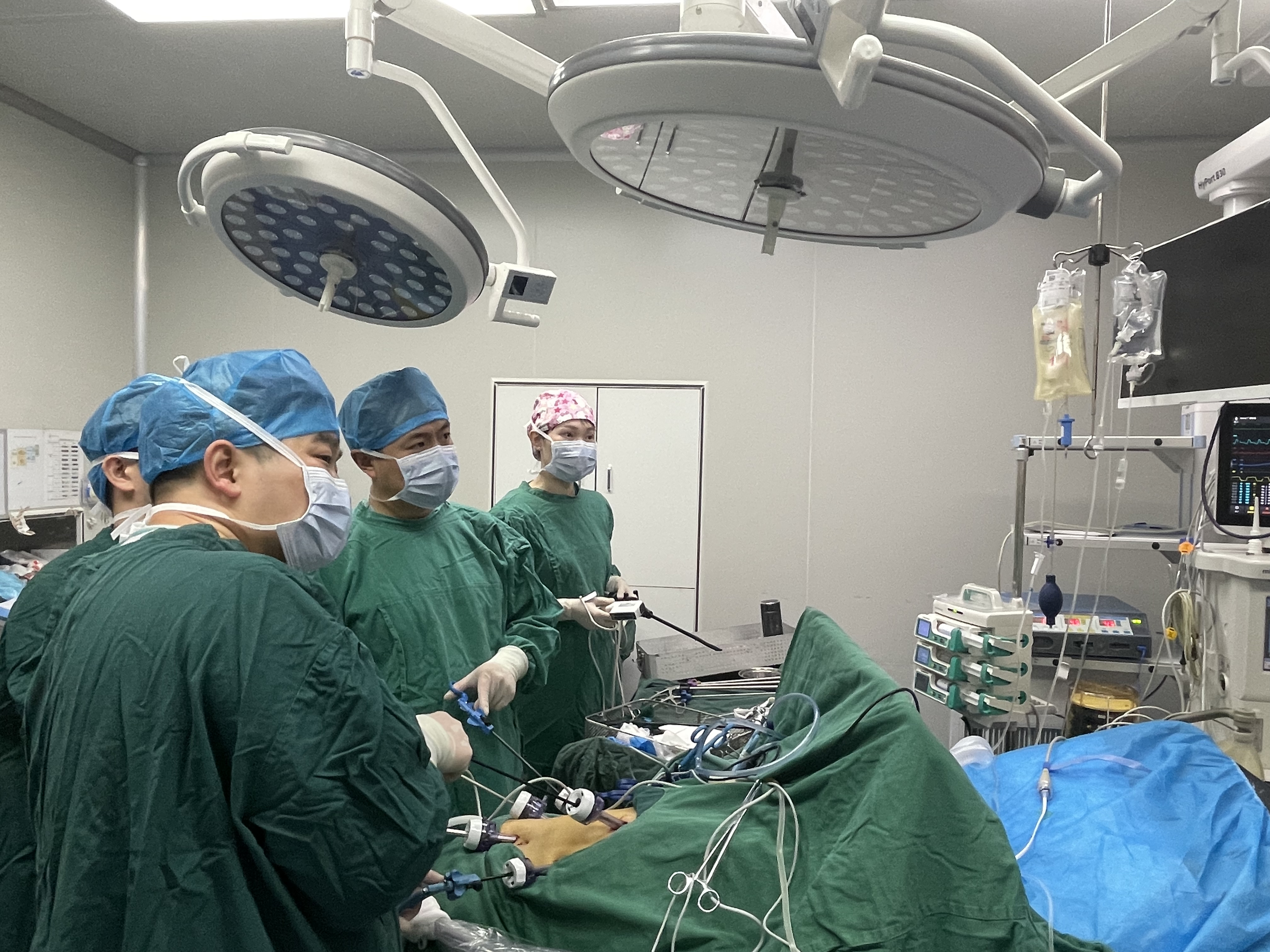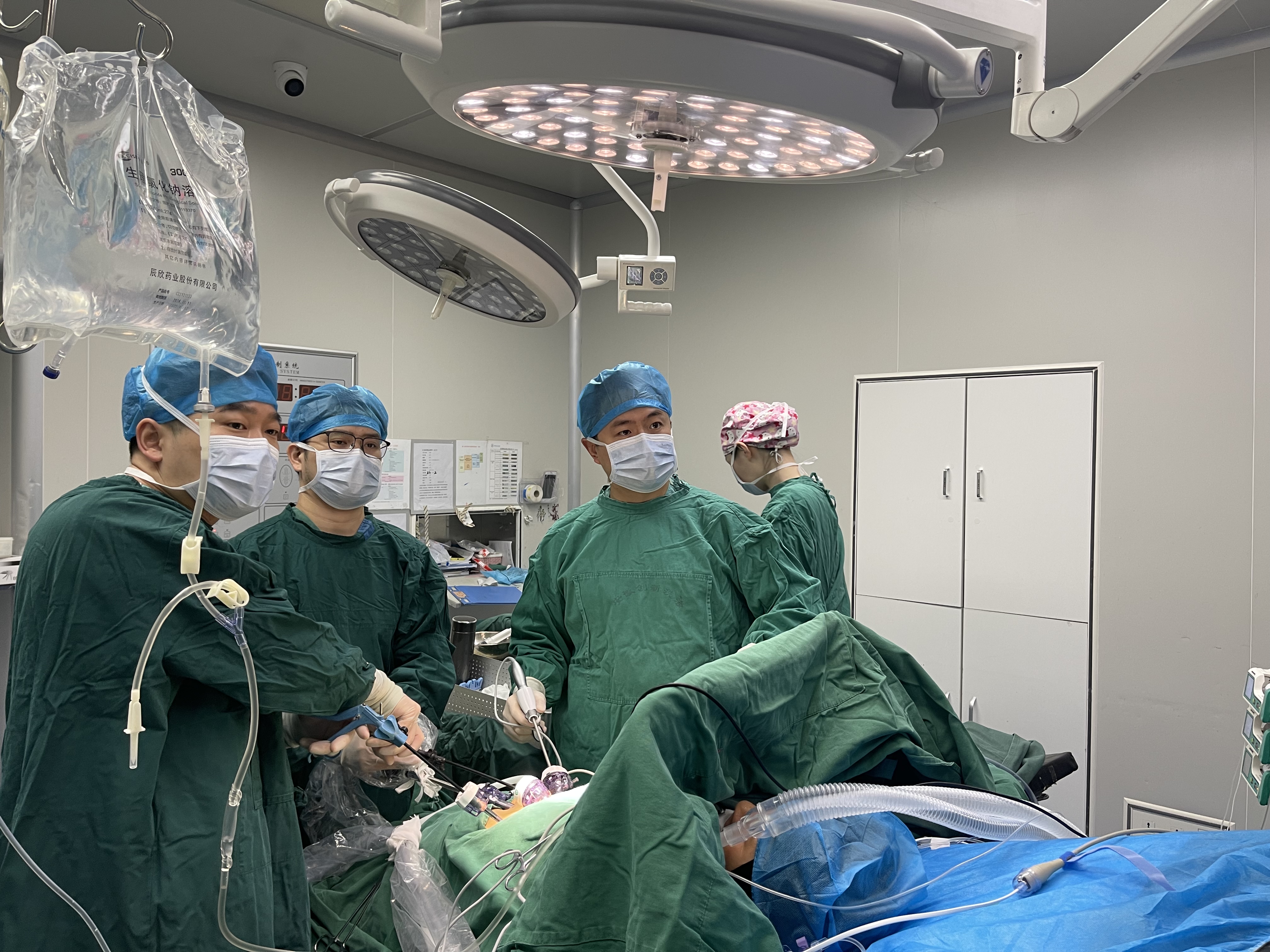 患者姚某某,51岁,农民,住颍州区马寨乡姚老家村,因“肝区疼痛不适2月余”入院;既往乙肝肝硬化病史多年。经检查,诊断考虑原发性肝癌、乙肝肝硬化,肿瘤较小,且术前超声造影定位不明确,肿瘤位于右后叶上段,手术暴露困难。对此,王继洲应用先进的荧光腹腔镜联合腹腔镜超声定位肿瘤,在腹腔镜下顺利完成了肿瘤的切除,使该患者切口小、创伤小、恢复快、住院时间短。