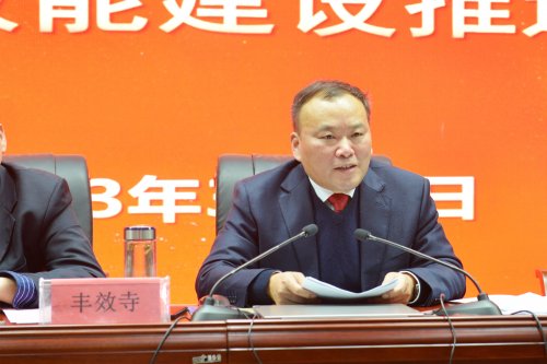 院党委书记丰效寺作了讲话,他首先代表院党委向全院干部职工一年来的辛勤付出表示衷心的感谢,向受到表扬的先进集体和先进个人表示热烈的祝贺,并就“2023年工作怎么干”对全院干部职工提出要求。