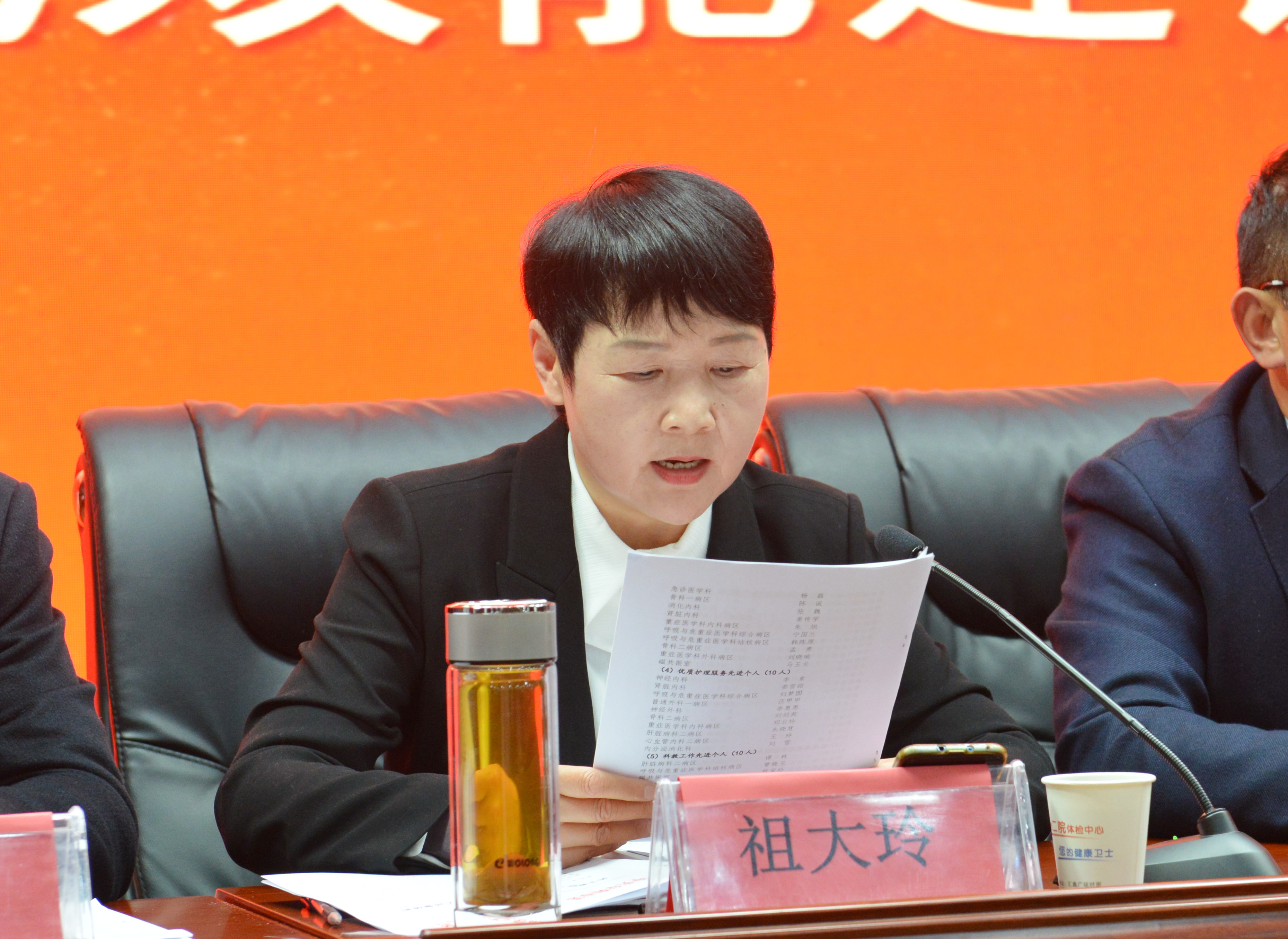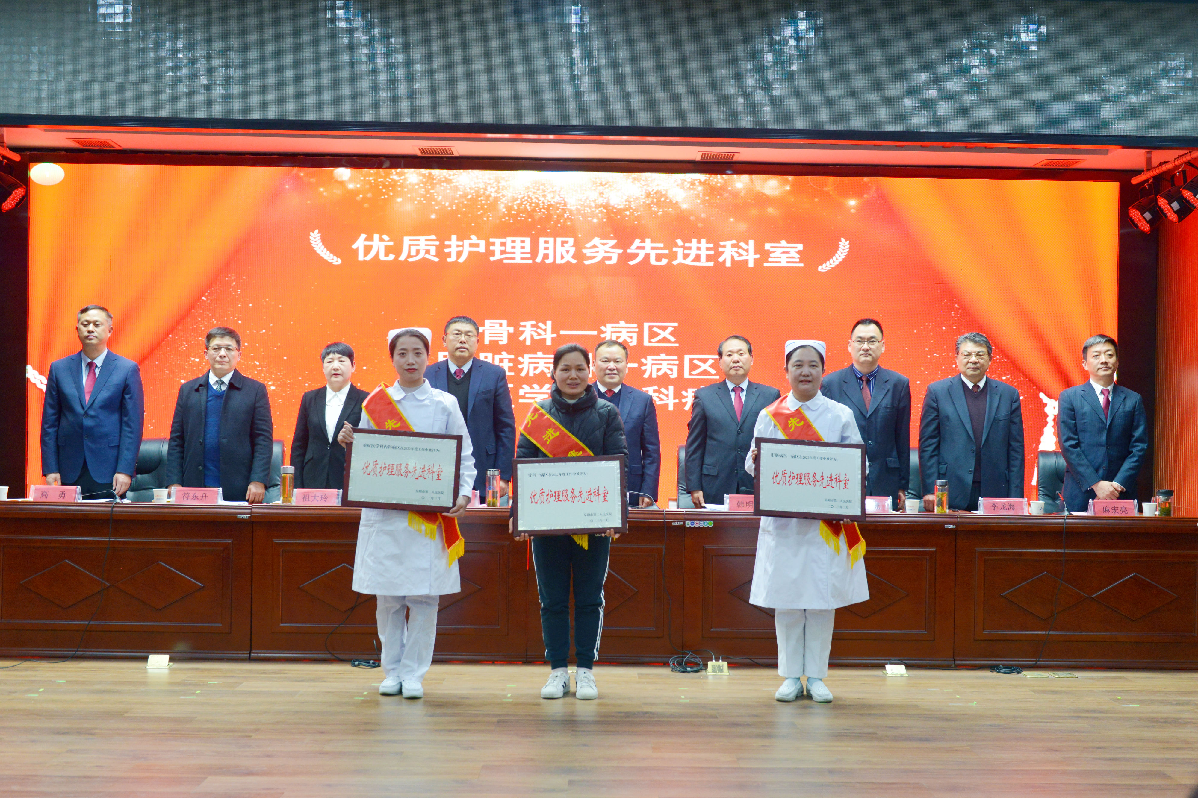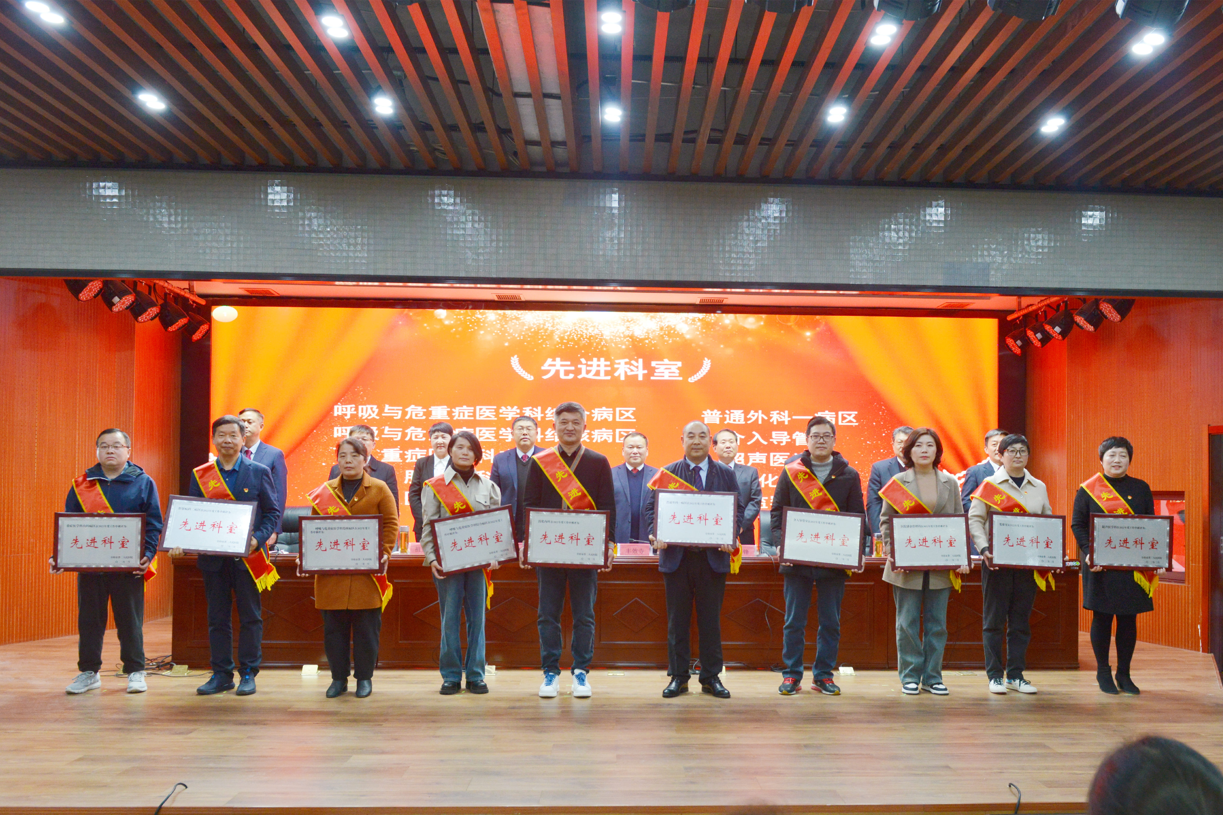 党委委员、副院长李秀勇宣读了《关于医院2022年度受上级表扬的先进集体和个人的通报》;党委委员祖大玲宣读了《关于表扬2022年度先进集体和先进个人的决定》。随后,院领导为2022年度先进集体和先进个人进行了颁奖。