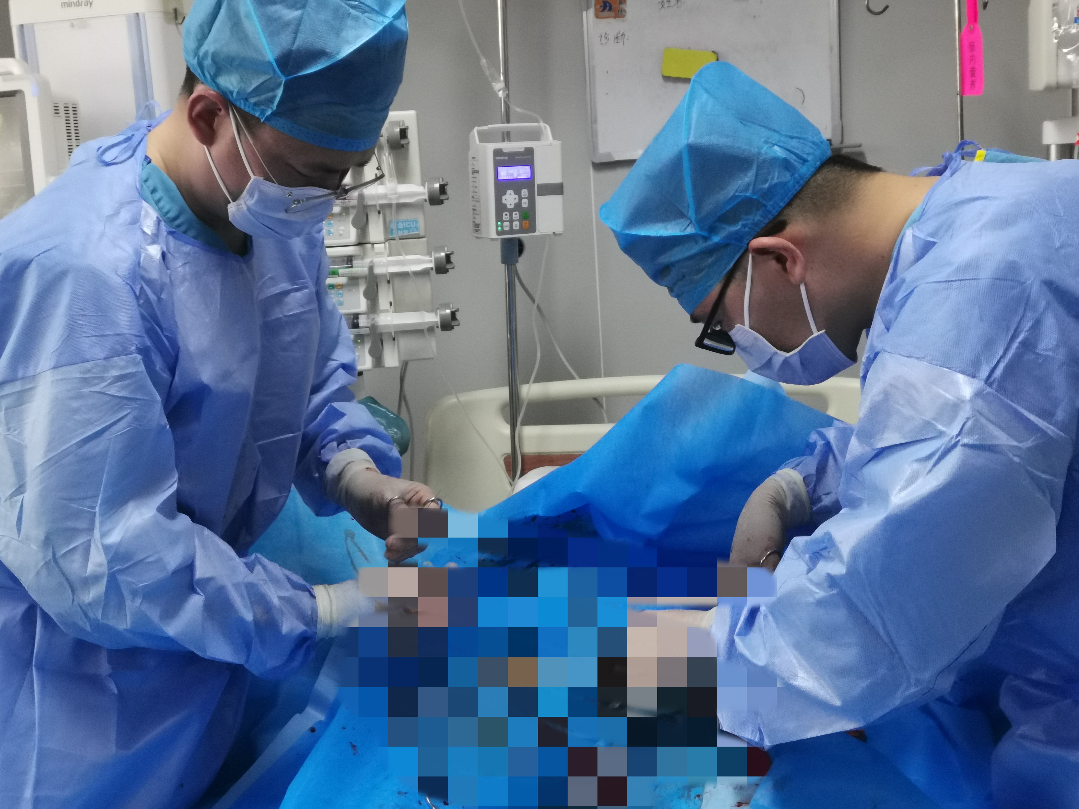 重症医学科(ICU)内科病区ECMO治疗团队立即为患者启动ECMO治疗,消毒、穿刺、冲管等操作迅速在床旁开展,经过医护人员约30分钟的紧密配合,争分夺秒,与死神赛跑,迅速建立静脉-动脉体外膜肺氧合(VA-ECMO),成功上机,设备持续运转正常,无明显严重并发症发生,患者循环即逐渐改善:血压上升,血氧饱和度改善,心率平稳......当鲜红的血液回输到患者体内,患者呼吸困难、低氧血症和心源性休克均被逐渐纠正,各项循环趋于稳定,生命体征明显改善,在场的医护人员欣喜地看到监护仪上一幕幕的变化,无不长舒一口气,一颗颗紧绷的心终于暂时放了下来。