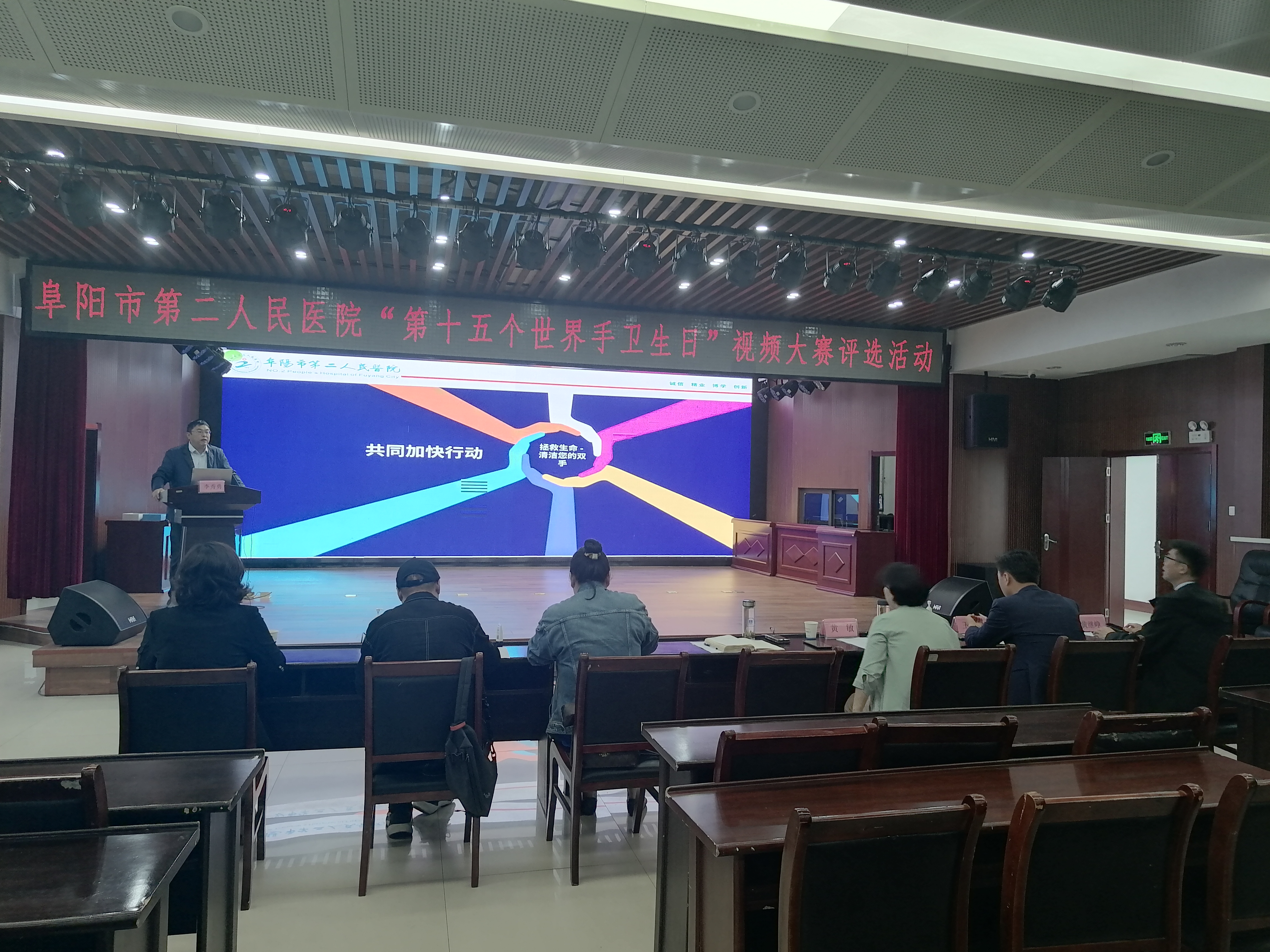 5月5日上午,在市第二人民医院副院长李秀勇、护理部主任黄敏、医务科科长王建、医院感染管理科科长肖华、副科长黄继峥、监察室主任汪露,阜阳广播电视台教育频道总监陈亚静,阜阳广播电视台融媒体中心主任、阜阳新闻联播制片人张杰等人的全程参与下,共同对进入决赛的20个参赛视频进行了现场评比。