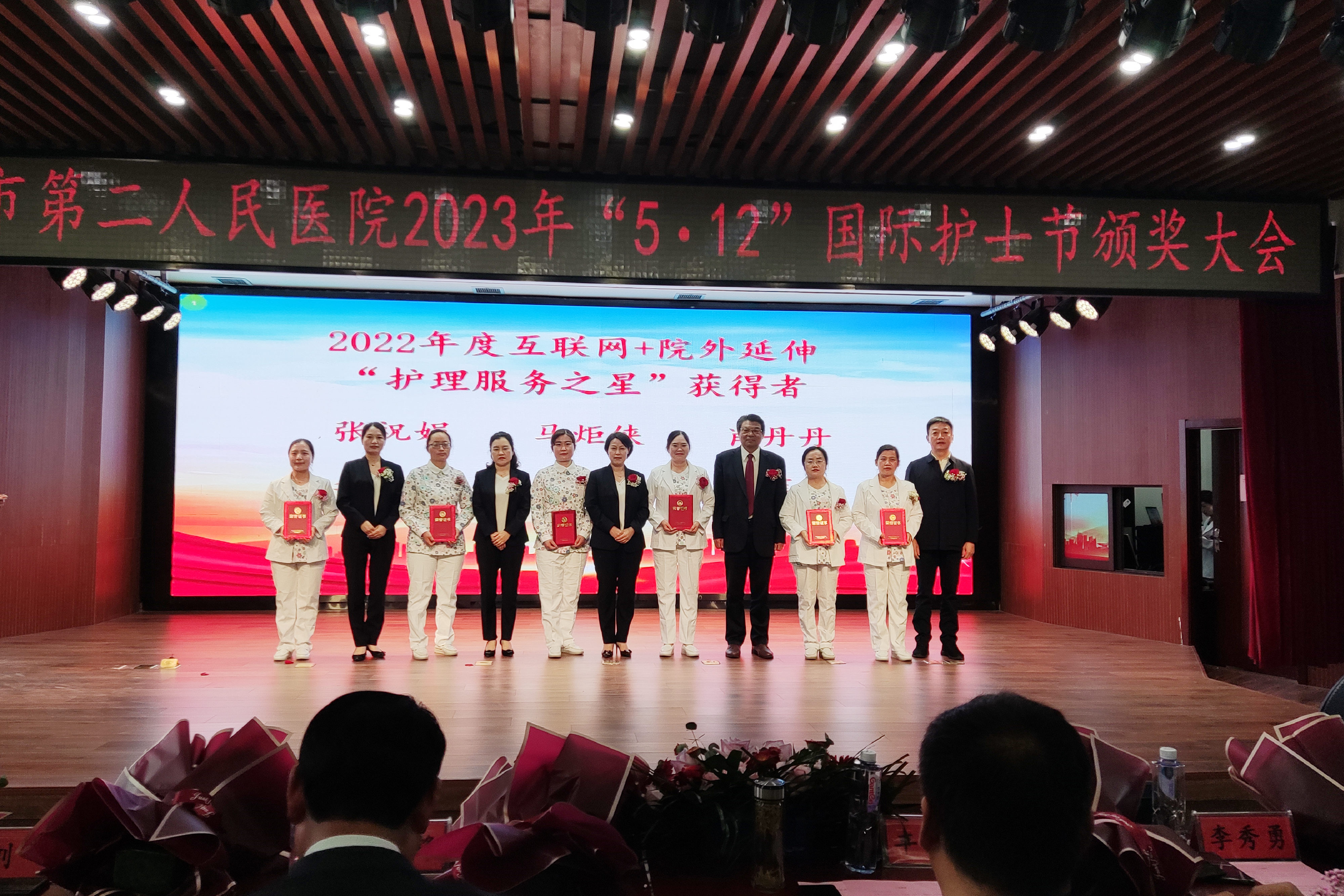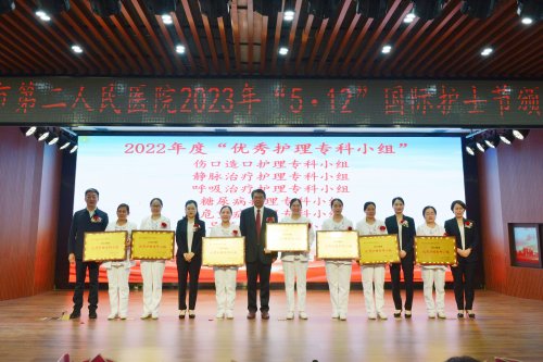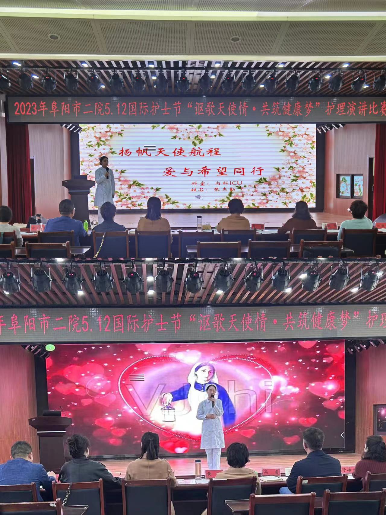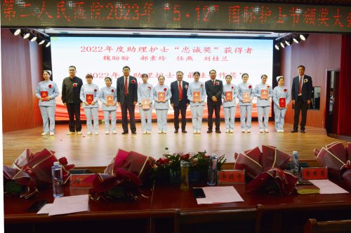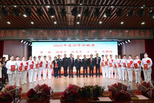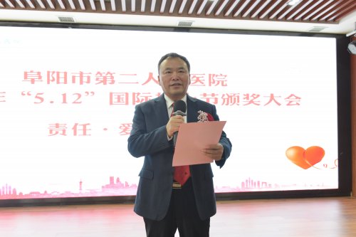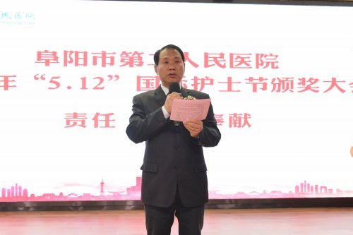 活动系列五:5月9日下午,阜阳市第二人民医院举行了“5.12”国际护士节颁奖大会,医院领导班子成员、获奖科室代表及个人参加大会,党委书记丰效寺,党委副书记、院长韩明锋分别致词,他们对护理工作充分肯定,对医院这支护理队伍高度认可,并预祝全院护理战线上的同胞们节日快乐。随后由各位到场领导为在护理工作中取得突出成绩的先进科室及个人进行颁奖。