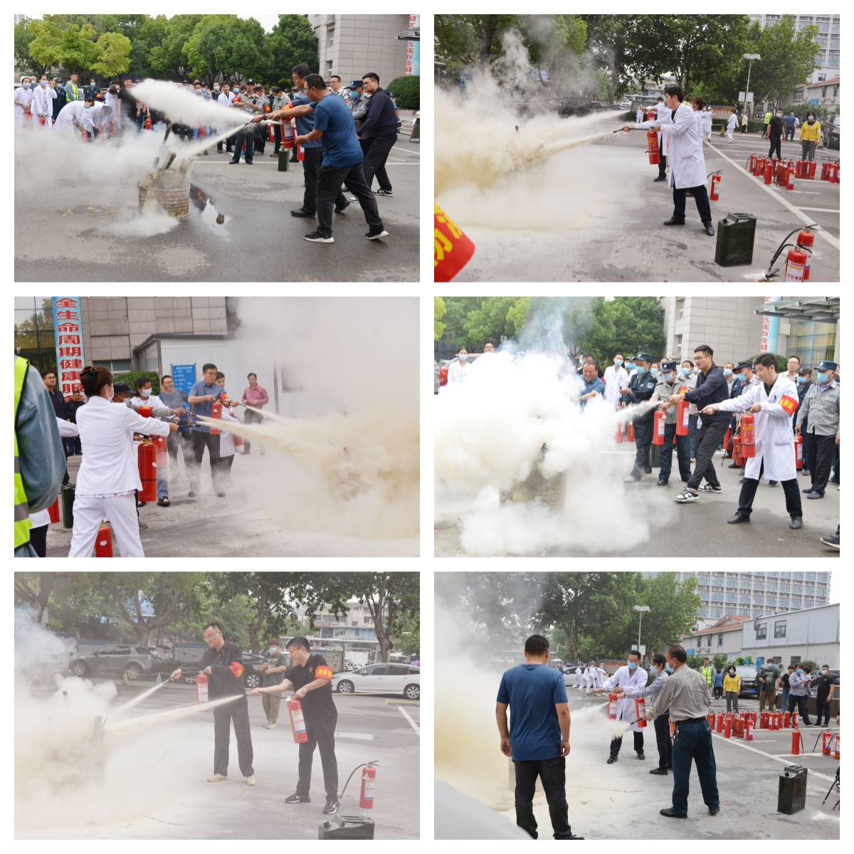 演练结束后,该院还组织了部分临床科室医护人员代表、安保人员和保洁人员,对干粉灭火器的使用,进行了现场培训与演练。