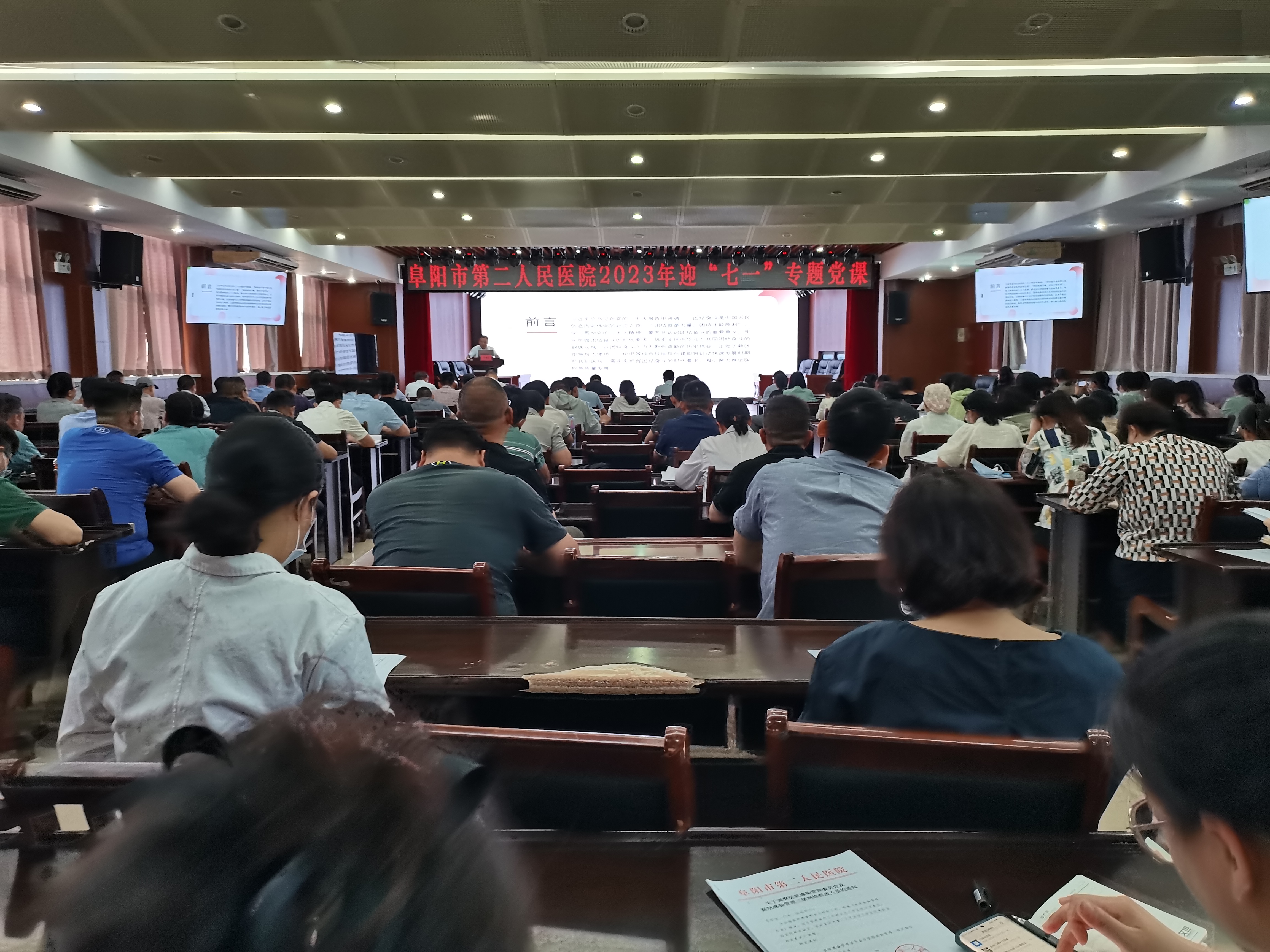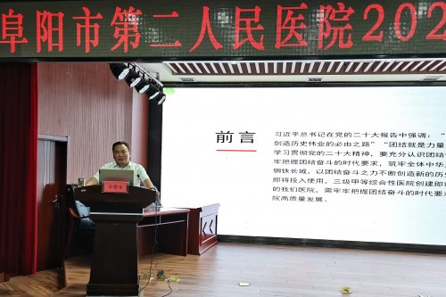 为迎接中国共产党成立102周年,深入学习宣传贯彻党的二十大精神,激励全院党员干部团结奋斗的热情,凝聚推动医院高质量发展的信心和力量,6月30日下午,阜阳市第二人民医院举办了迎“七一”专题党课活动。