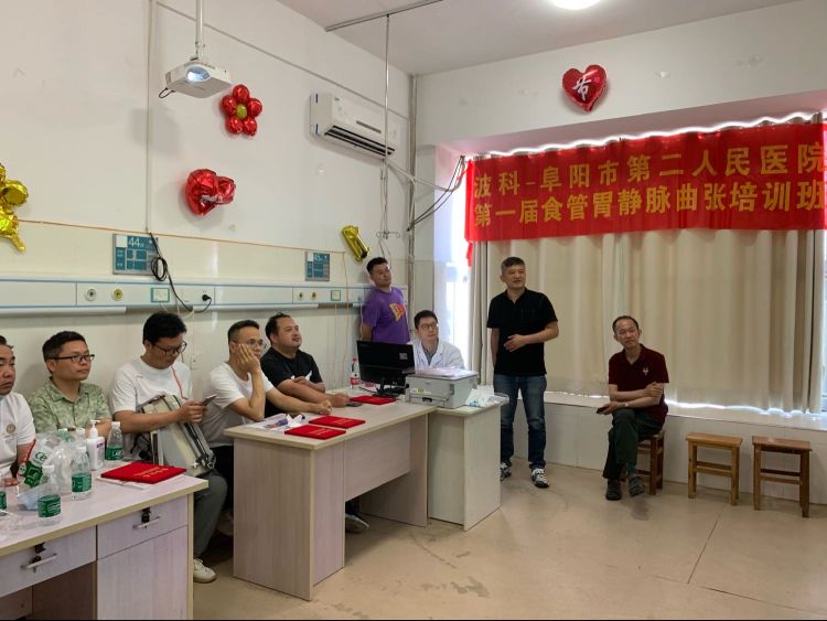 为进一步推动阜阳市食管胃静脉曲张诊治内镜技术的发展,促进消化领域的蓬勃发展,7月1日—7月7日,阜阳市第二人民医院消化内科举办首届“食管胃静脉曲张内镜下规范化诊治学习班”于市第二人民医院内镜中心正式开班教学。本次学习班的开启,吸引了皖南皖北六位同道前来交流。