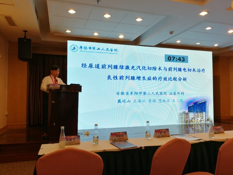 人物概况 戴廷山,男,汉族,1965年2月出生,安徽省利辛县人,民盟盟员,1989年毕业于蚌埠医学院,大学本科,主任医师,蚌埠医学院兼职教授,政协阜阳市第四届委员会委员、第五届、六届常务委员会委员,阜阳市第二届颍淮名医。阜阳市第二人民医院泌尿外科科主任,蚌埠医学院兼职教授。 基本信息 中文名 戴廷山 民族 汉 籍贯 皖利辛县 出生日期 1965年2月 毕业院校 蚌埠医学院 学历 本科 教学职称 教授 临床职称 主任医师 政治面貌 民盟盟员 人物经历 1984年9月—1989年 7月 就读于蚌埠医学院临床医学系 1989年07月—1994年 12月 任利辛县人民医院泌尿外科住院医师 1994年 12月—1998.1 月 任利辛县人民医院泌尿外科主治医师 1995年 11月—1996年 11月 赴安徽医科大学第一附属医院泌尿外科进修 1998年02月—2000年 12月 任阜阳市第二人民医院泌尿外科主治医师 2000年 09月—2001年 01月 赴首都医科大学附属朝阳医院肾移植中心泌尿外科进修 2001年12月—2008年12月 任阜阳市第二人民医院泌尿外科副主任医师 2004年12月—2008年12月 任阜阳市第二人民医院泌尿外科科副主任 2005年3月-2005年09月 赴华中科技大学附属同济医院泌尿外科进修泌尿外科微创技术 2008年12 月至今 任阜阳市第二人民医院泌尿外科科主任 2011年1月至今 阜阳市政协委员 2017年2月至今 民盟阜阳市委委员、阜阳市政协常务委员 2023年2月至今 民盟阜阳市委委员,阜阳市政协常务委员 2010年12月至今 蚌埠医学院兼职教授 研究方向 从事泌尿外科临床、教学和科研工作30余年,在泌尿外科常见病、多发病及疑难杂症的诊治方面积累了较为丰富的经验,尤其对先天性尿道下裂、复杂性尿道狭窄,肾、膀胱、前列腺肿瘤及前列腺疾病的诊治有其独到见解 擅长领域 泌尿系肿瘤的腹腔镜手术微创治疗;肾、输尿管结石的微创治疗;前列腺增生的激光治疗;泌尿系先天性畸形的治疗. 著作译作 1. 范振永, 戴廷山, 王二鹏, 等. 两种前列腺切除术式对体积大于 80mL 前列腺增生患者手术相关指标的影响[J].中国男科学杂志,2017, 31(5): 20-23. 2. 王二朋, 戴廷山, 范振永, 等. 经尿道前列腺电切术联合气压弹道超声碎石清石术治疗前列腺增生合并膀胱结石效果观察[J].蚌埠医学院学报,2016, 41(3): 348-350. 3. 李成福, 胡冬梅, 戴廷山. 彩超在阴茎勃起功能障碍中的应用[J]. 蚌埠医学院学报, 2014, 39(9): 1255-1256. 4. 戴廷山, 王二鹏, 范振勇, 等.经尿道回流式电切结合腔内碎石治疗前列腺增生症合并膀胱结石[C]//第十六届全国泌尿外科学术会议论文集.2009. 5. 戴廷山, 王二鹏, 张长红, 等. 上尿路结石并发急性梗阻性肾衰的外科治疗体会[C]//第十五届全国泌尿外科学术会议论文集. 2008. 6. 戴廷山, 刘伟, 曾建华, 等. 肾窦内肾盂加肾后下肾实质切开治疗巨大鹿角形肾结石[J]. 蚌埠醫學院學報, 2007,32(1):40-41. 7. 戴廷山, 刘伟, 曾建华, 等. 肾盂输尿管连接处梗阻的手术治疗[J]. 解剖与临床, 2006, 11(3): 182-184. 8. 戴廷山, 王二朋. 腹腔镜肾囊肿去顶术临床应用体会 (附 16 例报告)[C]//第十二届全国,第七届全球华人泌尿外科学术会议论文汇编(中册). 2005. 9. 戴廷山, 刘伟, 曾建华, 等. 带蒂岛状皮瓣加盖法保留尿道板尿道下裂一期成形术[J]. 临床医学, 2005, 25(12):31-32. 10. 戴廷山, 张培新. 横形包皮岛状皮瓣尿道下裂一期成形术[D]. , 2001. 11. 戴廷山, 刘伟, 刘明. 肾上腺囊肿 6 例[J]. 中国肿瘤临床, 2000 (8): 13. 12. 王中瑞, 刘伟, 戴廷山. 中西医结合治疗慢性细菌性前列腺炎[J]. 中国社区医学, 2000, 6(4): 57-57. 13. 戴廷山, 芮清峰, 刘凭, 等. 68 例前列腺增生症摘除术并发症防治探讨[J]. 工企医刊, 1999, 12(3): 8-9. 14. 2020年作为通讯作者发表《Association between Frailty and Erectile Dysfunction amongChineseElderly Men》于Biomed Res Int,该论文收录SCI,期刊影响因子2.197 15. 2021年作为第二作者+通讯发表《经尿道前列腺绿激光汽化切除术与前列腺电切术治疗体积小于100mL良性前列腺增生的疗效对比分析》于《微创泌尿外科杂志》,该论文收录科技核心,期刊影响因子0.853 16. 2021年作为第二作者+通讯发表《输尿管镜钬激光碎石术后尿路感染影响因素及其预后》于《中华医院感染学杂志》,该论文收录北图核心,期刊影响因子1.792 17. 2021年作为第二作者+通讯发表《160W绿激光汽化术微创治疗高危良性前列腺增生的疗效及安全性》于《临床与病理杂志》,该论文收录科技核心,期刊影响因子0.660 18. 作为第二作者+通讯发表《第五代EMS气压弹道联合超声碎石清石术治疗22例感染性肾结石的临床效果观察》于《国际泌尿系统杂志》,该论文收录科技核心,期刊影响因子0.556 科研项目 2019年4月——2022年4月 主持市级科研项目颍淮排石1号联合弹道碎石与钬激光治疗输尿管中下段结石随机对照研究 2019年4月——2022年0月 参与市级科研项目气压弹道与钬激光治疗输尿管中下段结石的对照研究 2019年4月——2022年4月 参与市级科研项目经皮肾五代EMS一期治疗脓肾研究 2020年4月——2022年 12月 主持市级科研项目5G时代新冠疫情期间日间手术平台的构建与管理 2020年 12月——2022年12 月 参与省级科研项目颍淮排石二号对输尿管上段结石术后残石排出的疗效分析 学术成就 擅长泌尿系结石、肿瘤、感染、畸形、前列腺增生症等泌尿-男性生殖系疾病的诊治, 从事泌尿外科临床、教学和科研工作30余年,在泌尿外科常见病、多发病及