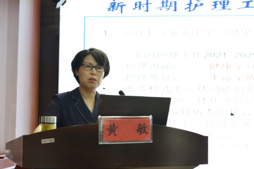 护理部主任黄敏围绕“新形势下我院护理安全现状及思考”的主题,分别从新形势下护理安全现状、基于不良事件引发的思考及安全文化与理念这三个方面对护理安全进行详细的讲解,并通过对医院2023年上半年典型的护理不良事件进行分析及总结,对“中国医院协会患者安全十大安全目标”(2022版)进行详细的解读,运用典型案例给护士以清晰、明确的指引,对新内容、新规定、新要求的如何落实做了重点强调。