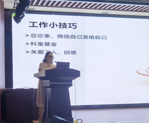 随后,肾病科护士长代莉向大家分享如何将8S管理理念实施到科室管理中。从8S管理理念运用在科室环境、耗材、器械、安全、人员素养等几个方面进行了详细阐述。神经内科护士长范慧,从自己成长为职业技术学院老师的经历告诉大家,做一名合格的管理者,具备学习能力的重要性,要从自我管理开始,不断学习,进一步提高自身的知识储备等方面进行分享。介入诊疗中心护士长祝涛,在授课过程中,引经论典,通过历史、名著人物,用幽默诙谐的授课方式,讲述作为一名护士长应具备的素质及能力,并传达护士长不仅是个人优秀,更应该带领一群人优秀,才是卓越的护理管理理念。普通外科一病区护士长李莹莹,用朴实的语言分享了自己作为一位护士长的成长心路历程,分析了护士长的职责和角色,结合自己的管理经验及感悟体会,生动阐述了如何做好一名科室管理者。