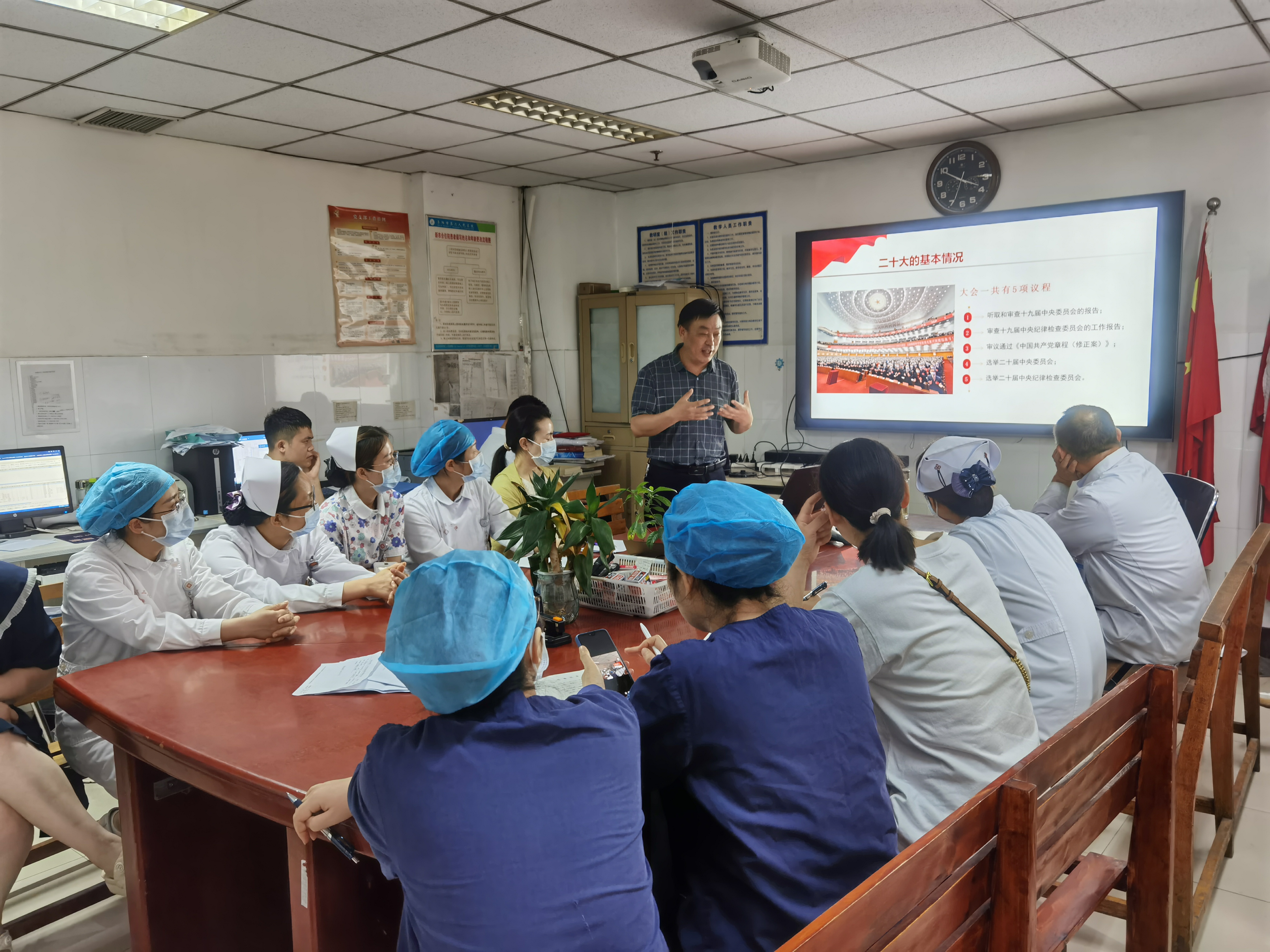 7月13日,阜阳市第二人民医院外科党支部召开支部主题党日活动,邀请医院高级政工师、宣传科科长兼院长办公室副主任、阜阳市“社科名家宣讲团”成员马怀业做了“思想传下去,精神提上来,阜阳市学习宣传贯彻党的二十大精神‘社科名家大巡讲’”。支部书记孙海云主持巡讲活动,全体党员参加。 马怀业指出,学习宣传贯彻党的二十大精神是当前和今后一个时期的首要政治任务,要全面贯彻习近平新时代中国特色社会主义思想,提高政治站位,把旗帜鲜明讲政治贯穿工作始终。他围绕着“学习贯彻党的二十大精神,健康中国,医者先行”,重点带领大家认真学习了党的二十大精神。 今年7月1日,是中国共产党建党102周年纪念日。在授课之初,马怀业提议外科支部全体党员,在支部委员、神经外科主任徐敬斌的带领下,共同重温了入党誓词。马怀业建议大家巧记入党誓词,并通过经常重温了入党誓词,内化于心,外化于行,不断增强党性,成为一名优秀的共产党员。 授课中,马怀业系统介绍了党的二十大报告主要内容及其逻辑关系,他结合自已读原文,悟心得,力避照本宣科和作报告、喊口号,用通俗的语言和生动的实例,全面诠释党的二十大精神的核心要义及其所蕴含的深刻道理,让党员们“听得懂、记得住、用得上”,使理论宣讲与党员医务工作者碰撞出更多的“思想火花”,点燃干事“热情”,提振精神动力,增强信心与行为自觉,推动党的二十大精神落地生根、开花结果,让党的二十大精神贯彻“落得实、看得见”。 “听完马主任的精彩授课,我备受鼓舞,党的二十大报告为今后的工作指明了方向,给了我们自信和力量。作为一名党员护理工作者,我将带领我们科室的护理团队,秉持‘关爱生命、呵护健康,诚信为本、患者至上’的理念,以健康中国为已任,更好地为广大患者服务。”全国“巾帼建功标兵”、安徽省“三八”红旗手、安徽省优秀护士、安徽省卫生健康系统新冠肺炎疫情防控工作先进个人、江淮护理之星、重症医学科外科病区的护士长张祝娟说。 |