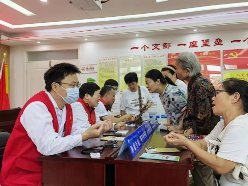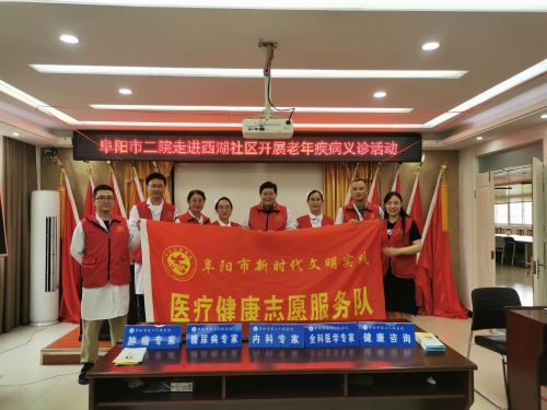为宣传普及老年健康政策和科学知识,切实提高老年人健康素养和健康水平,更好地提高老年人群的健康意识和自我保健意识,在“2023年全国老年健康宣传周”来临之际,7月27日,阜阳市第二人民医院全科医学科老年病科及社工部一行9人走进颍州区西湖社区开展“爱心义诊进社区便民服务暖人心”医疗健康志愿服务活动。在西湖社区文明实践中心,市二院全科医学科老年病科团队,为市民就健康问题答疑解惑,并提供免费的骨密度测定、血压、血糖监测、用药咨询等服务。