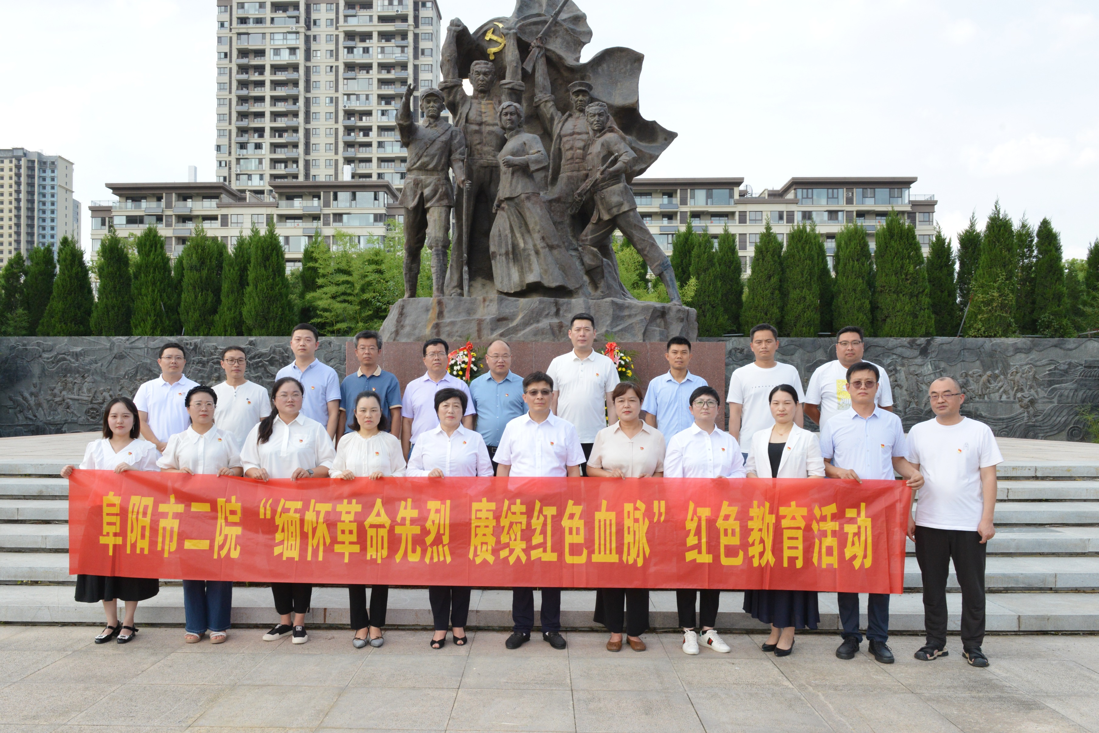 全体同志在革命烈士雕像前列队肃立、默哀追思、敬献花篮、鞠躬致敬,市二院纪委书记符东升缓步上前,仔细整理了花篮缎带,随后带领大家绕行瞻仰革命烈士雕像,向为探索中国救亡图存道路、为推进党的事业发展壮大的革命英烈们致以崇高敬意。