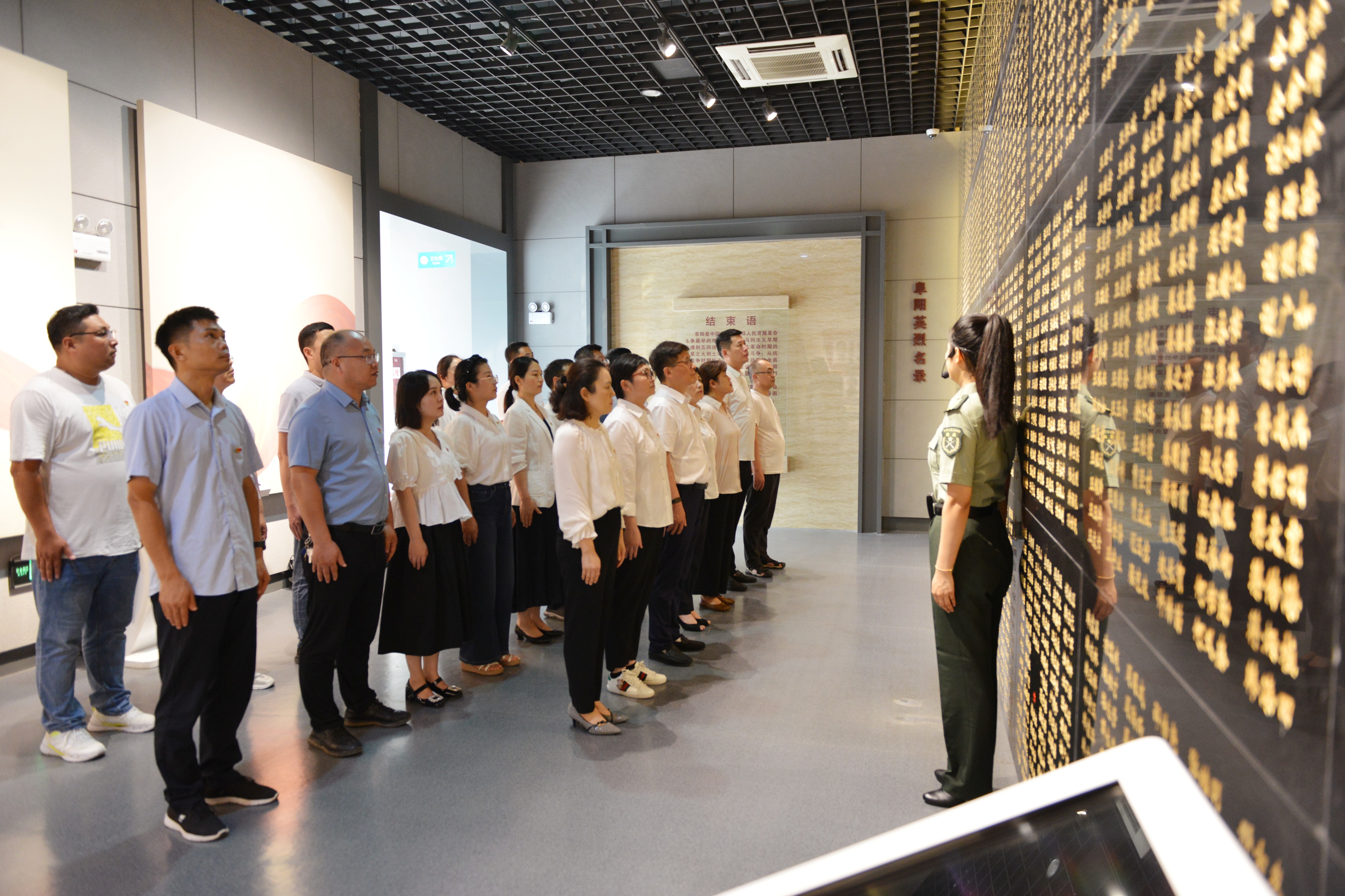 在展厅内,大家听讲解,看实物,观图片,在一件件珍贵文物、一幅幅老旧照片、一个个生动场景前驻足凝视,重温百年前共产党人为理想而生、为信念而死的峥嵘岁月,深切缅怀革命先烈团结带领阜阳人民不怕牺牲、英勇奋斗的崇高风范和用生命诠释对党绝对忠诚的政治本色。
