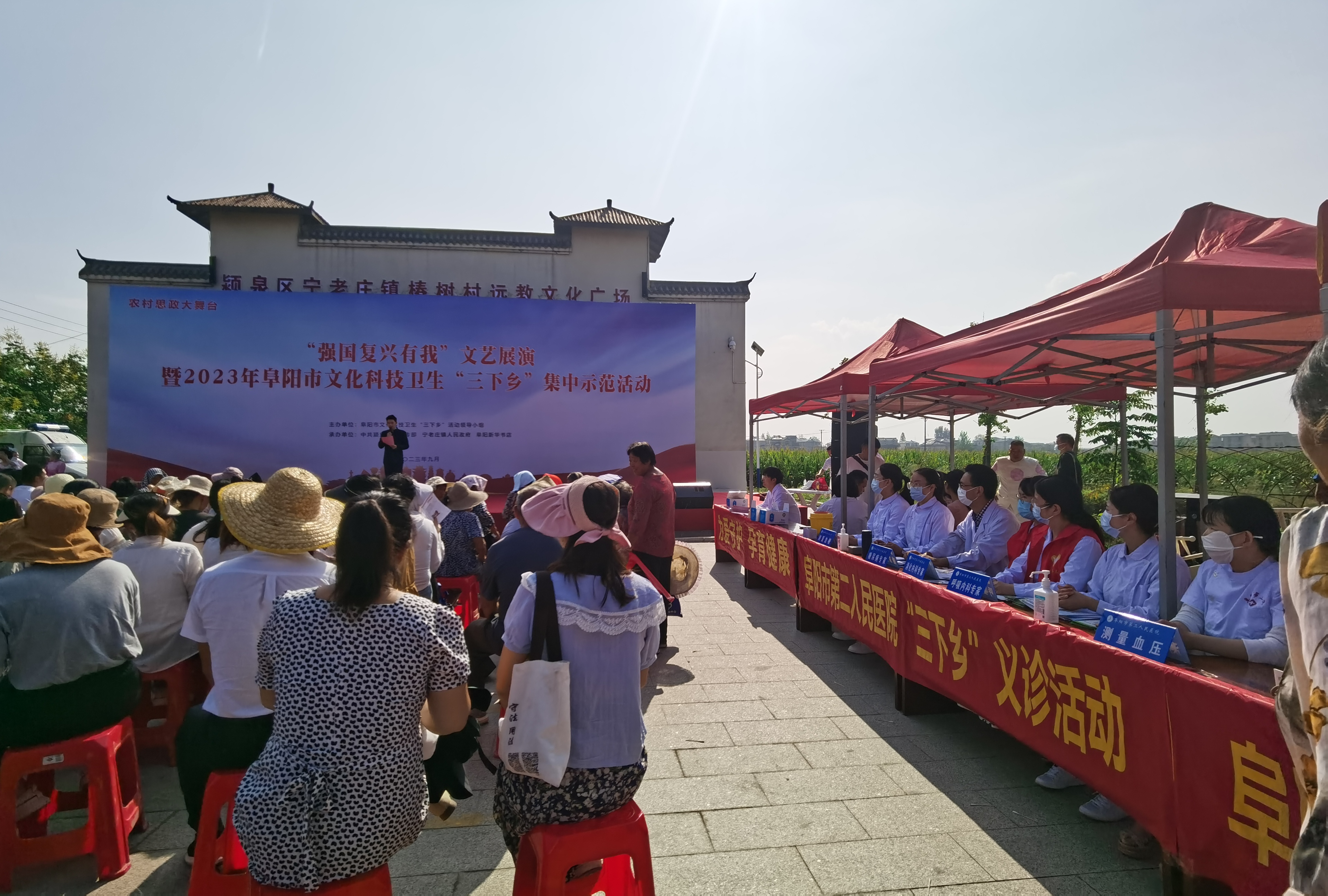 根据阜阳市“三下乡”活动领导小组的通知要求,9月7日上午阜阳市第二人民医院积极响应上级号召,组织医院有关科室在颍泉区宁老庄镇椿树村文化生活广场开展“三下乡”集中示范活动。