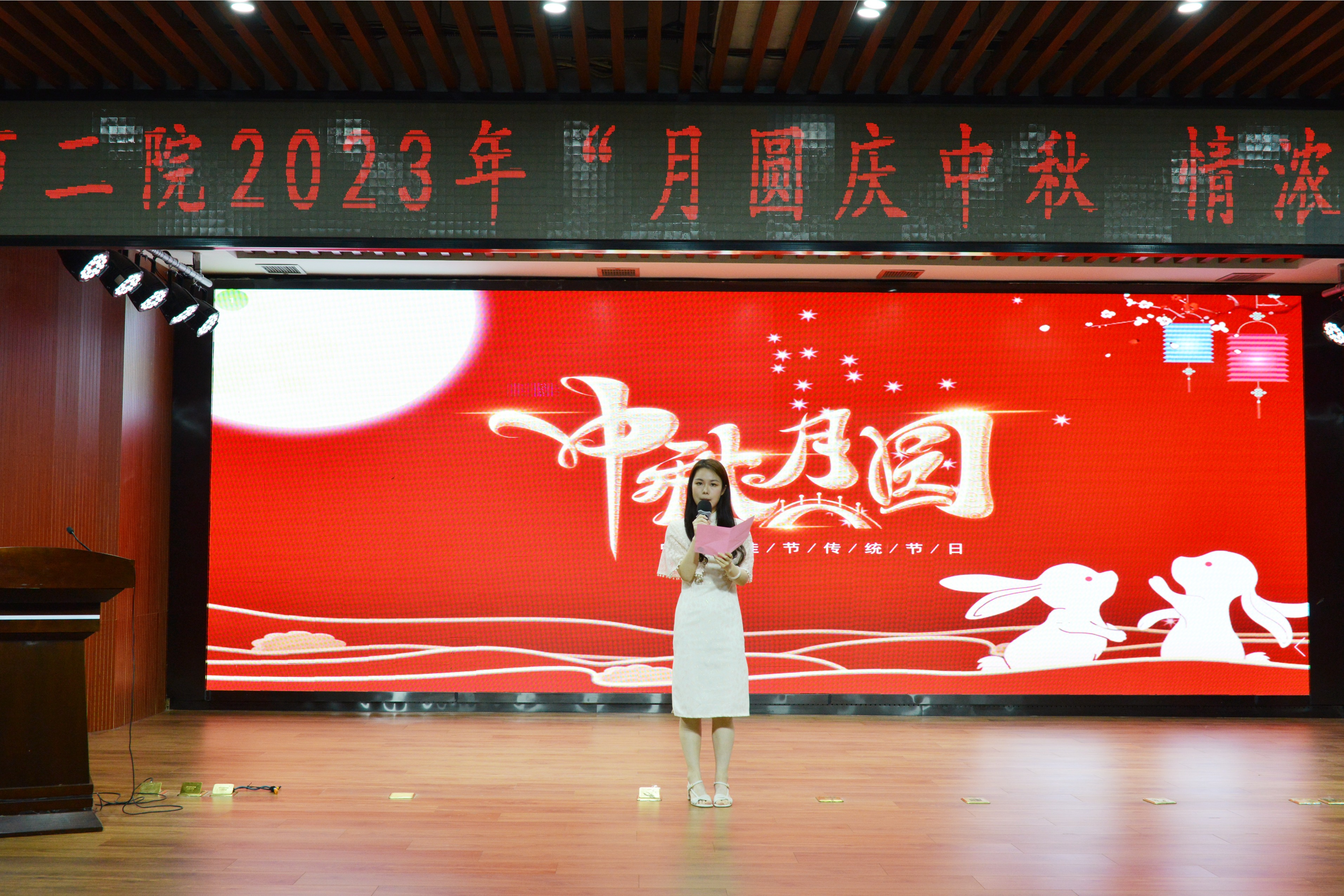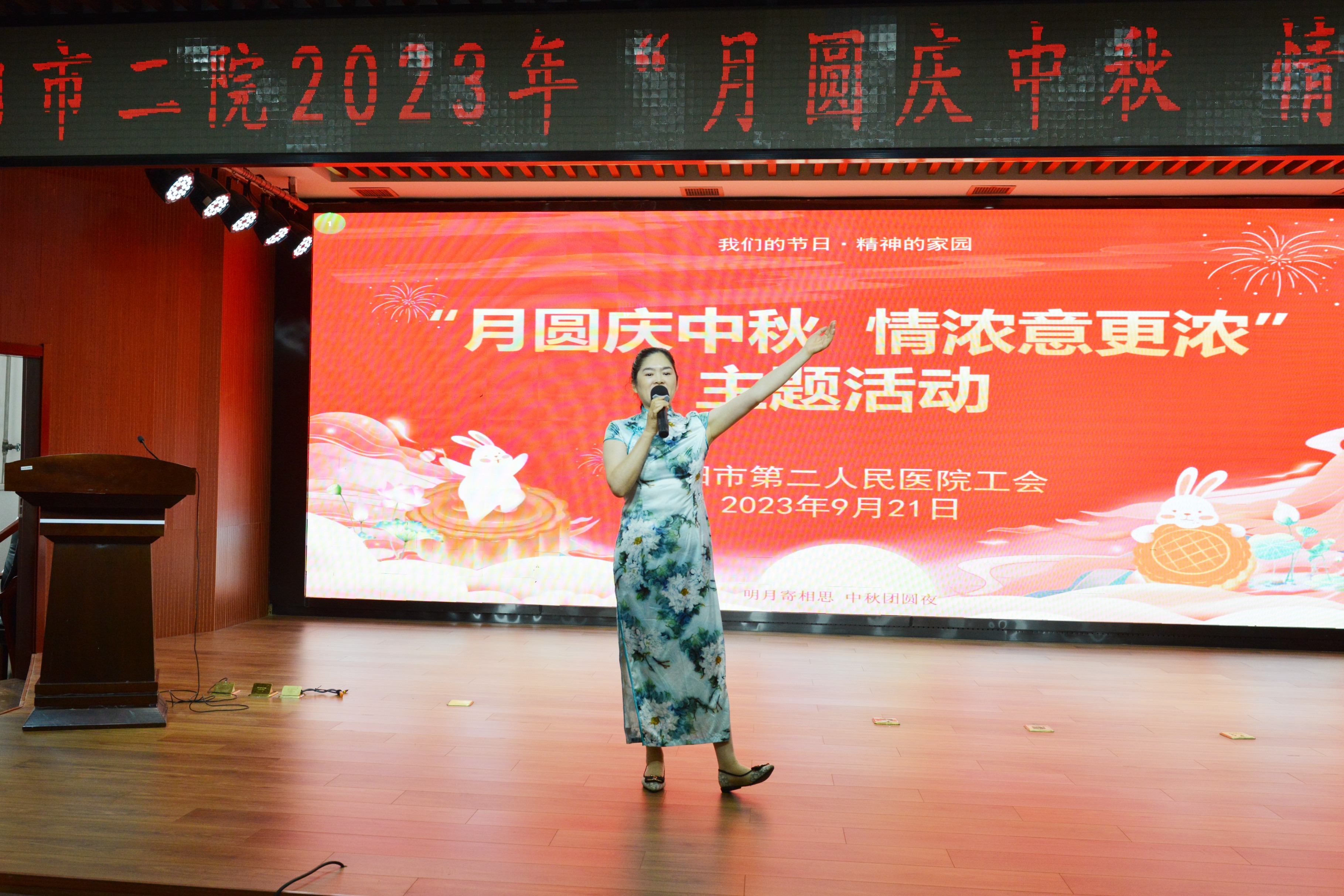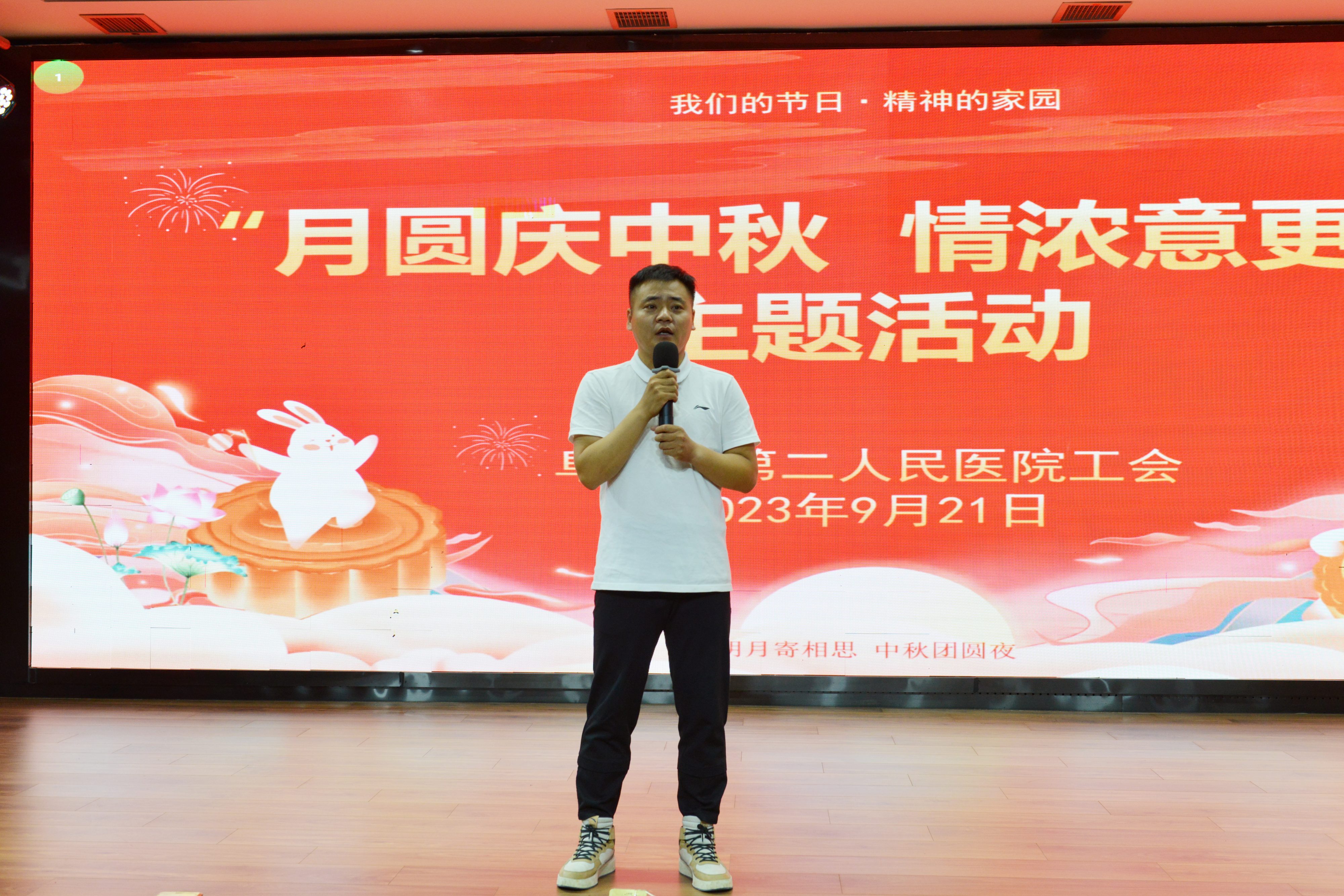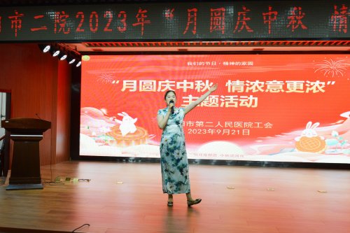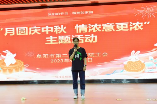 祖大玲致开幕辞。她对一直以来辛勤工作、无私奉献的医护人员表达了由衷的感谢之情,并对积极筹备此次中秋活动的工会委员会表示感谢。