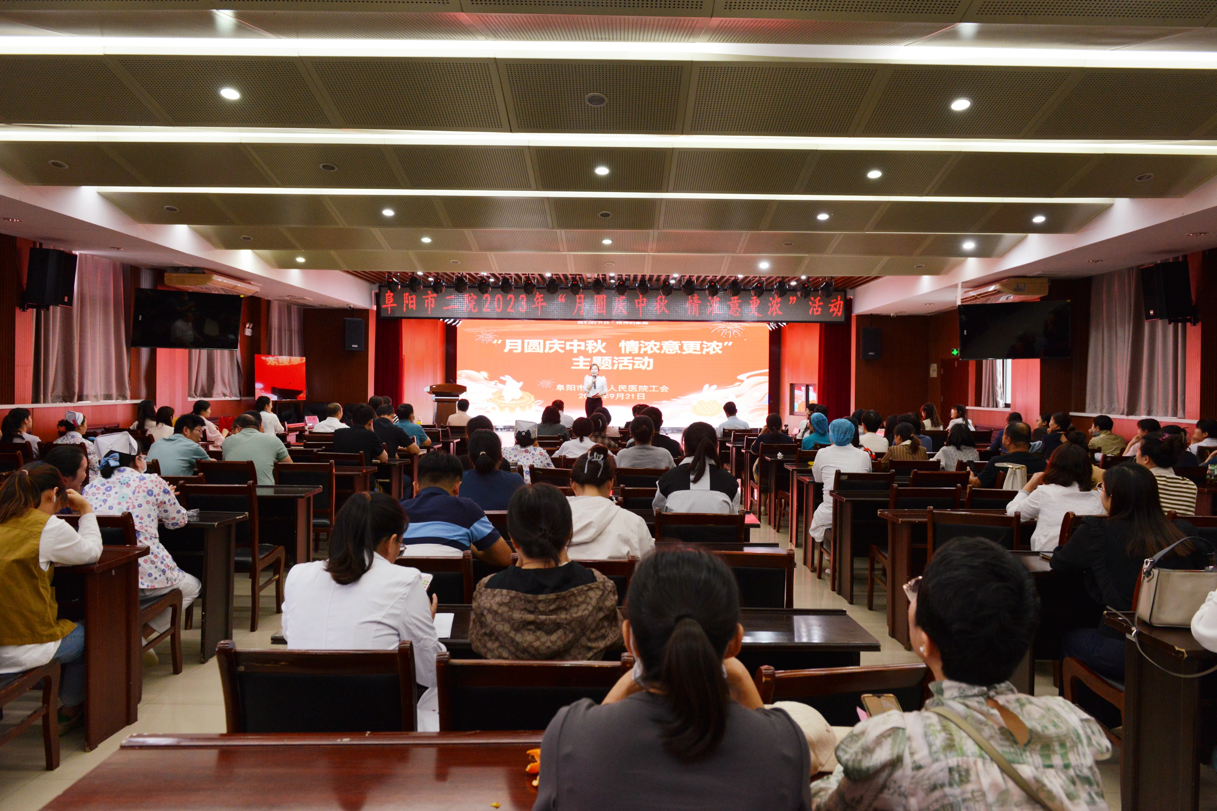 丹桂飘香沁心脾,祝福满满迎中秋。为让全体职工能够度过一个快乐、祥和的中秋佳节,增强职工凝聚力和归属感。9月21日下午,阜阳市第二人民医院开展了“月圆庆中秋、情浓意更浓”活动。院党委委员、副院长麻宏亮、高勇,党委委员祖大玲出席该活动。