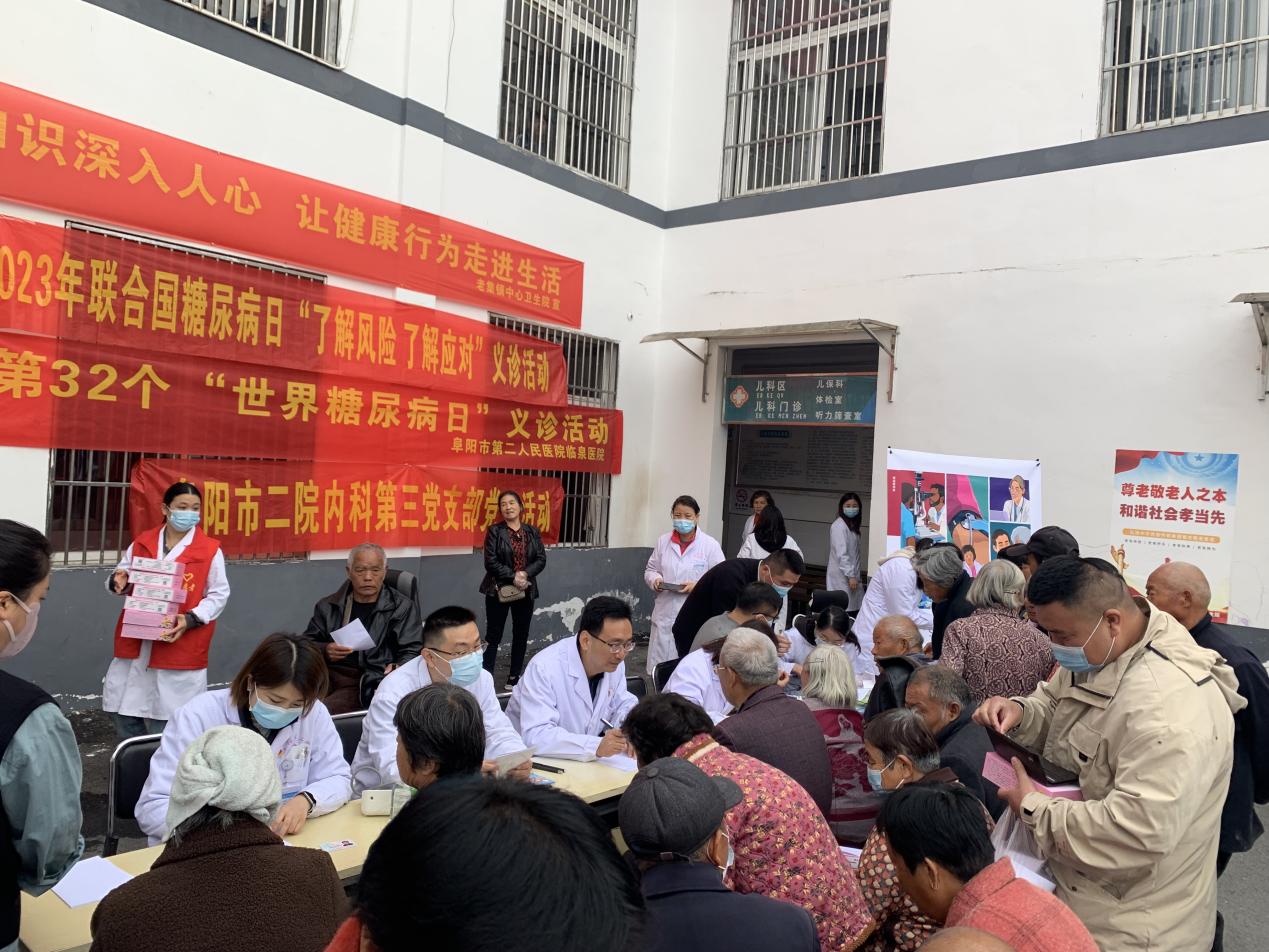 为了提高公众对于糖尿病的认识,采取有效的措施来预防和控制糖尿病,11月9日上午,阜阳市第二人民医院内分泌科医护人员来到临泉县老集镇中心卫生院开展了宣传义诊活动。