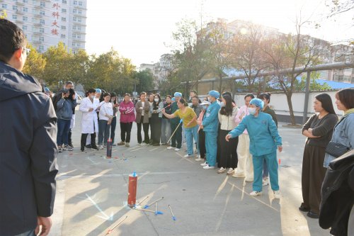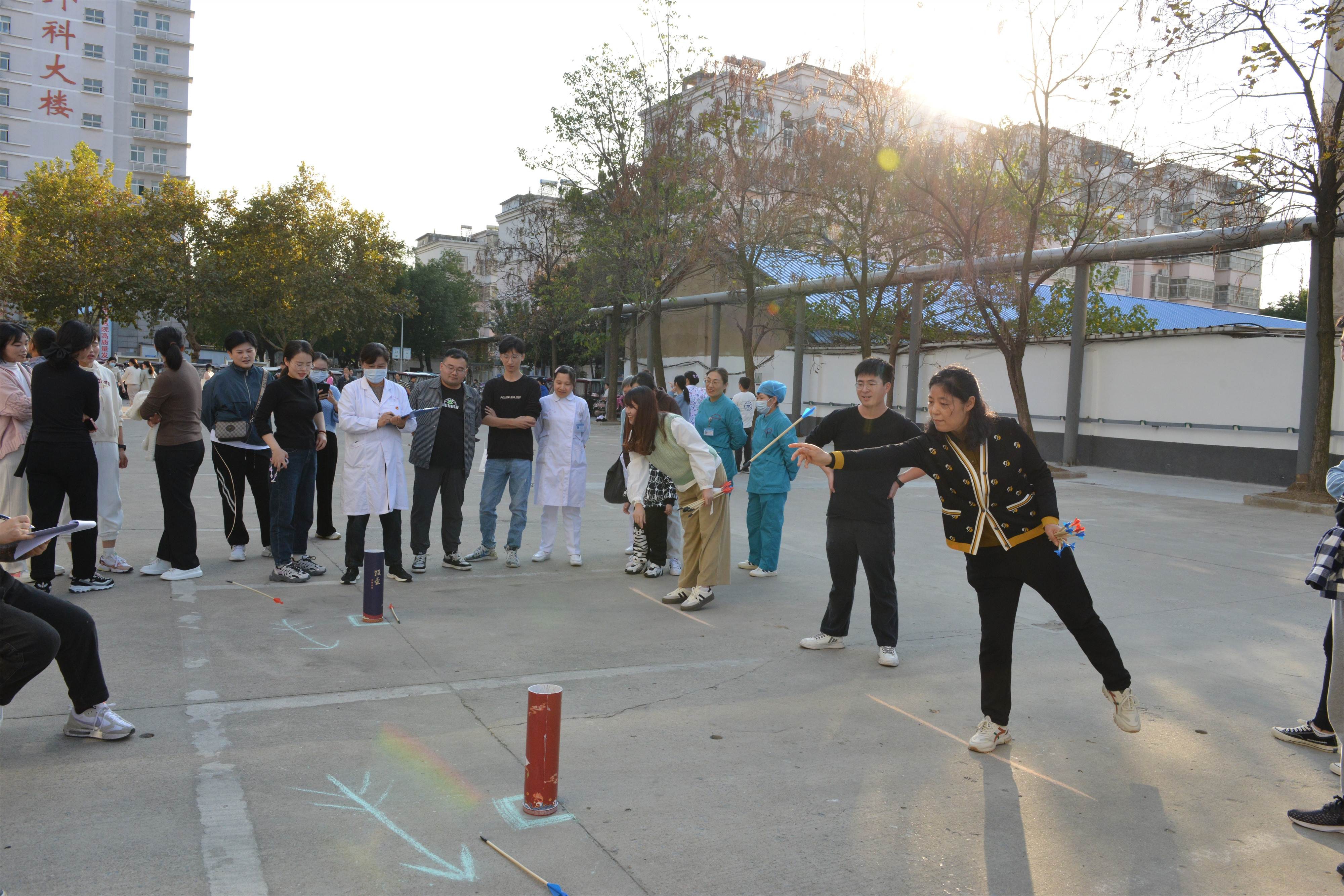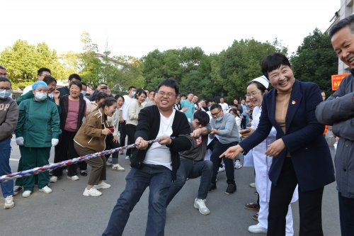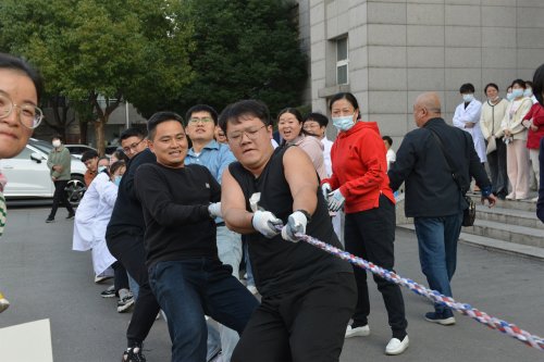 本次运动会项目包括集体项目为拔河比赛、长跳绳、篮球、足球,双人项目为羽毛球、两人三足、螃蟹运球,单人项目为投壶、乒乓球。来自全院各科室、门诊、健康体检中心的480名干部职工踊跃参与。所有比赛项目分别以1号楼组(含急救)、内科1组、内科2组、外科1组、外科2组、行政后勤组、门诊医技组、感染科组等八支代表队进行。